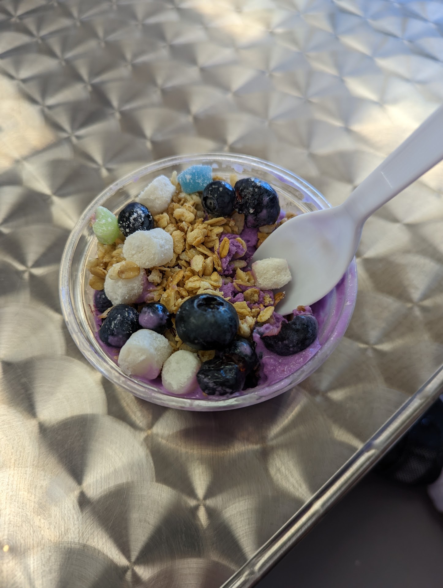 Read moreThis place is amazing! I had had like one acai bowl in my life before this and it wasn't great because I had no idea what to get. But I'm trying to be healthier even with my sweet tooth, so I gave this place a try. It was awesome! Sorry I don't remember the girl's name but right when I walked in she asked if she could make me a sample and I ended up just getting what she made me! She suggested toppings and what to get for my toddler and it all turned out amazing. The ingredients are fresh and unique and delicious and I will so be back soon. Oh also, the whole reason I was able to spend the time to make it perfect was because my toddler was busy happily drawing on the chalk wall! Just do it! It WILL be delicious. It's not just acai either they have lots of familiar...