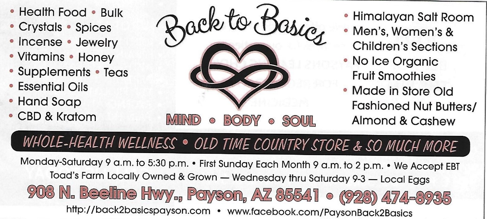 Back to Basics is a quaint and lovely country market in Payson that provides lots of healthy living supplements, vitamins and food choices. Items that are hard to find, especially for people on gluten free, and other specific eating plans can count on Back to Basics to supply foods and snacks, farm fresh eggs, grass fed pasture raised meats and so much more. You gotta see it to know- and there are great folks with the knowledge on how to use products you may need but have never heard of. They also have salt lamps, homemade soaps and personal care, healthy home care products and so much more. Go in and...