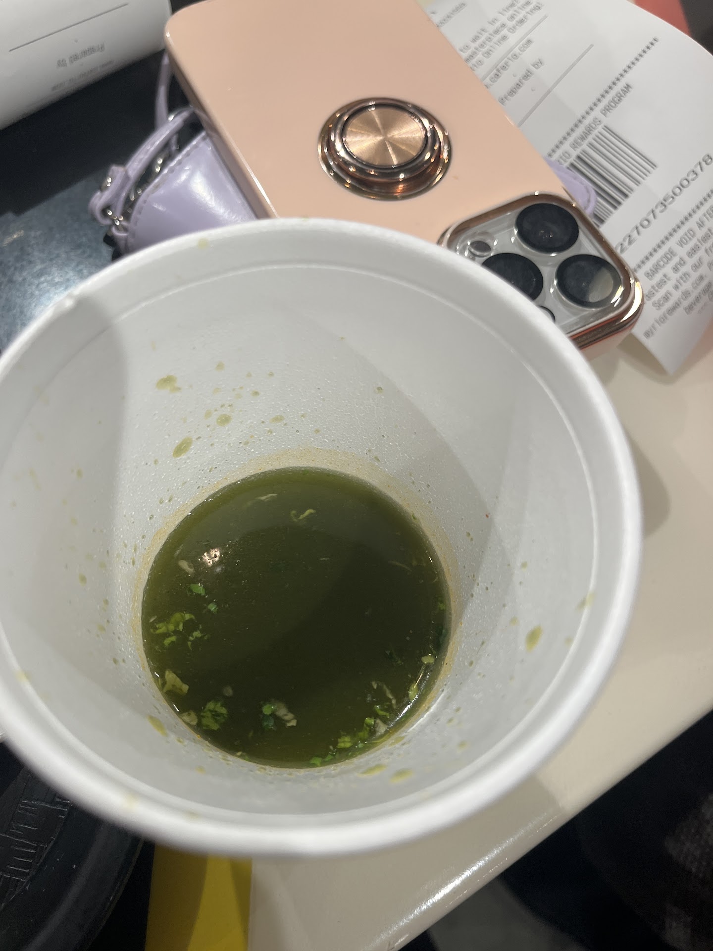 Repeatedly interrupted in the drive through while explaining my order, and dealt with unprofessionally Told to park in the front of the building for "a couple minutes" while they finished cooking steak for my order, after waiting through the entire drive through line. I waited there for 15min, wondering if they were trying to punish me for pushing back on their rudeness when placing my order. When I asked them about what happened to "a couple of minutes," I was told that it had only been 5-minutes, and refused to acknowledge the 15min additional wait time in my parked car. No receipt was given: Potentially so that I did not leave them a bad review on the QR survey Shorted various items: No salad dressing for the salad, virtually no Pico De Gallo on my burrito (pictured with literally maybe a half teaspoon of pico), only 1-2 tablespoons of shredded chicken provided in a tostada (also pictured exactly as received). No napkins, no utensils provided Double billed: Failure to cancel my original mobile order which they said they would do, as I was replacing it with the drive through order.