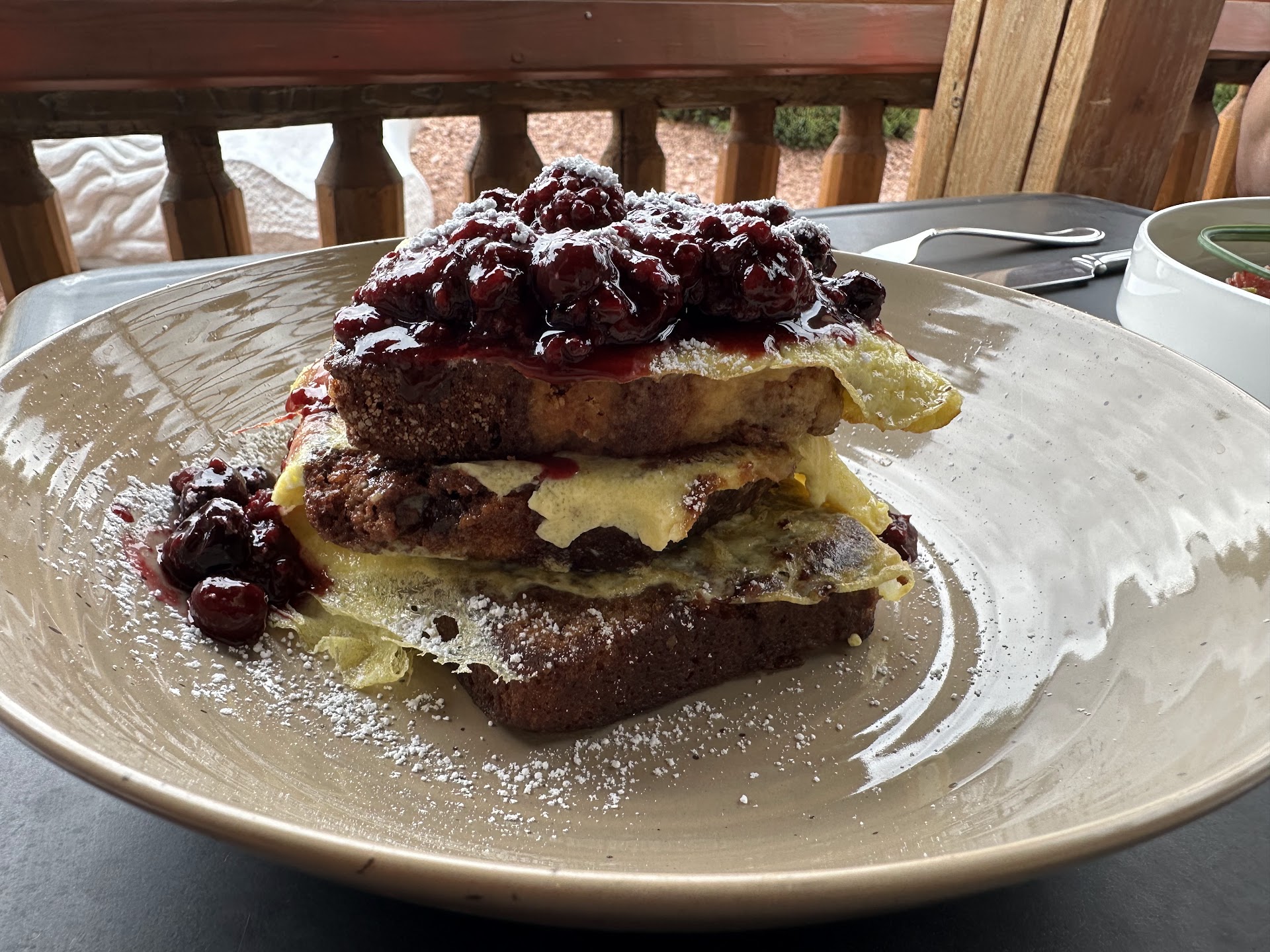 Duza's Kitchen is a wonderful place to stop by for a bite to eat. We made the drive up to Payson to get some much needed adventure time being cooped up with two little ones for the past two months. With nearby Green Valley Park (a great family outing to walk around the pond and play at the playground) as our main stopping point Duza's Kitchen is close by. From the road Duza's pulls one in as if you're an out-of-town visiting family. We were greeted by a great staff and they sat our family on the covered patio where we enjoyed a beautiful view of the perfectly landscaped front yard while sipping herb and fruit infused water on a perfect spring day with a light breeze. The menu is the perfect size, not too big that it's overwhelming. Offering a highly executed menu to satiate every palate to include a usually picky 7 year old. The husband ordered the daily special of a breakfast burrito which came with red and green sauce. I ordered the Hash House and our 7 year old, though she was hesitant because there wasn't a kids menu option ordered the Assorted French Toast. The husband devoured the large breakfast burrito wanting to order a second because the eggs were the freshest he's ever had and all the ingredients were perfectly blended. My Hash House was fantastically flavorful hitting the savory palate with an assortment of perfectly rustic country potatoes with perfectly seasoned and cooked corn beef, prime rib, ham and smoked brisket with added flavor provided by the bell peppers, scallions, shallots and mushroom blend. The most talked about dish for all of us was the Assorted French Toast that is a culinary masterpiece. The creator of this dish should give themselves a major pat on their back. Don't think about your traditional french toast. Nevermind the brioche, eggs, maple syrup and fresh whipped cream. This french toast is elevated higher than the Himalayas! We all talked about the 3 different types of "toast" (Yes, not 1, not 2 but 3) on this dish. The bottom layer was a banana nut bread, followed by a carrot cake type bread followed by a tea bread topped with fresh fruit. Each slice of this toast was like bitting into a perfect light little sweetened clouds. Hands down the best breakfast dish we've ever had!