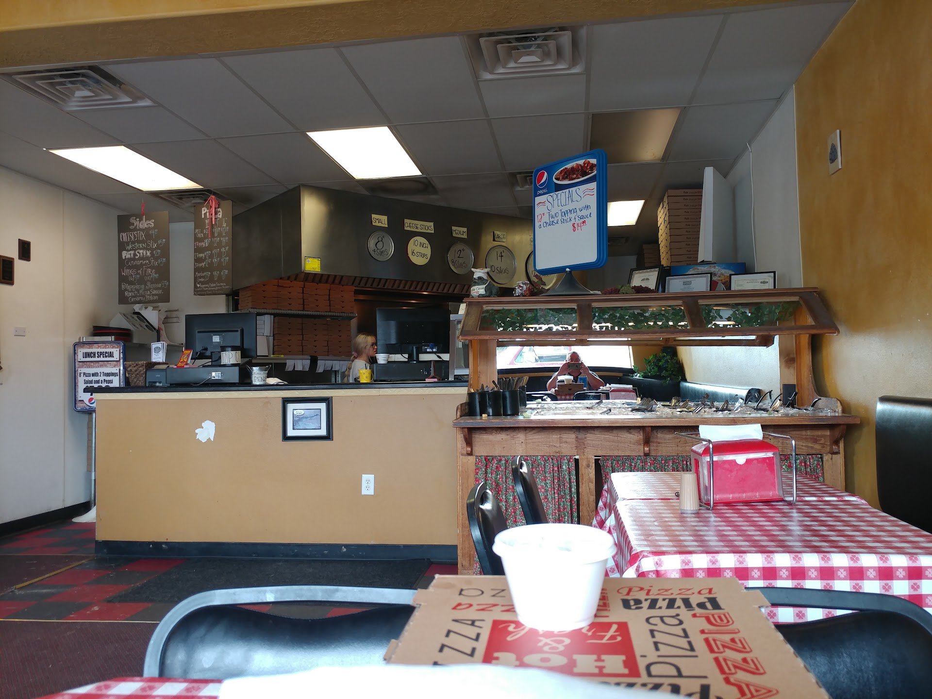 The first time we ordered pizza from here, it took over an hour and a half Past the expected delivery time for me to get my pizza, we thought that maybe the dine in would be a better experience. We were wrong.