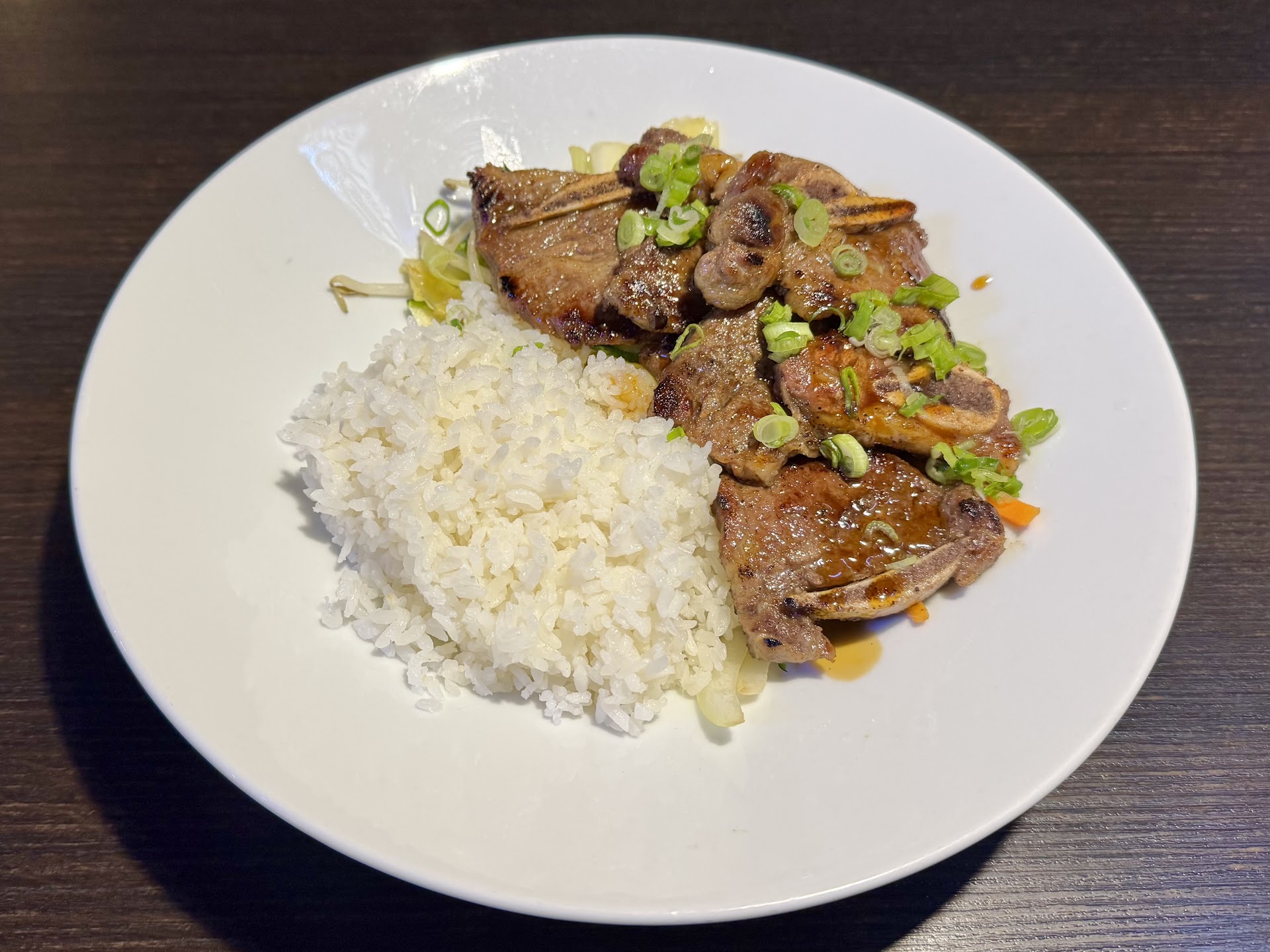 There were seven pieces of Galbi served over sautĆ©ed chopped vegetables (mostly cabbage) and with steamed white rice. The Galbi was on the sweeter side. Iād prefer a little bit more sesame oil and ginger in the marinade, but it was tasty.