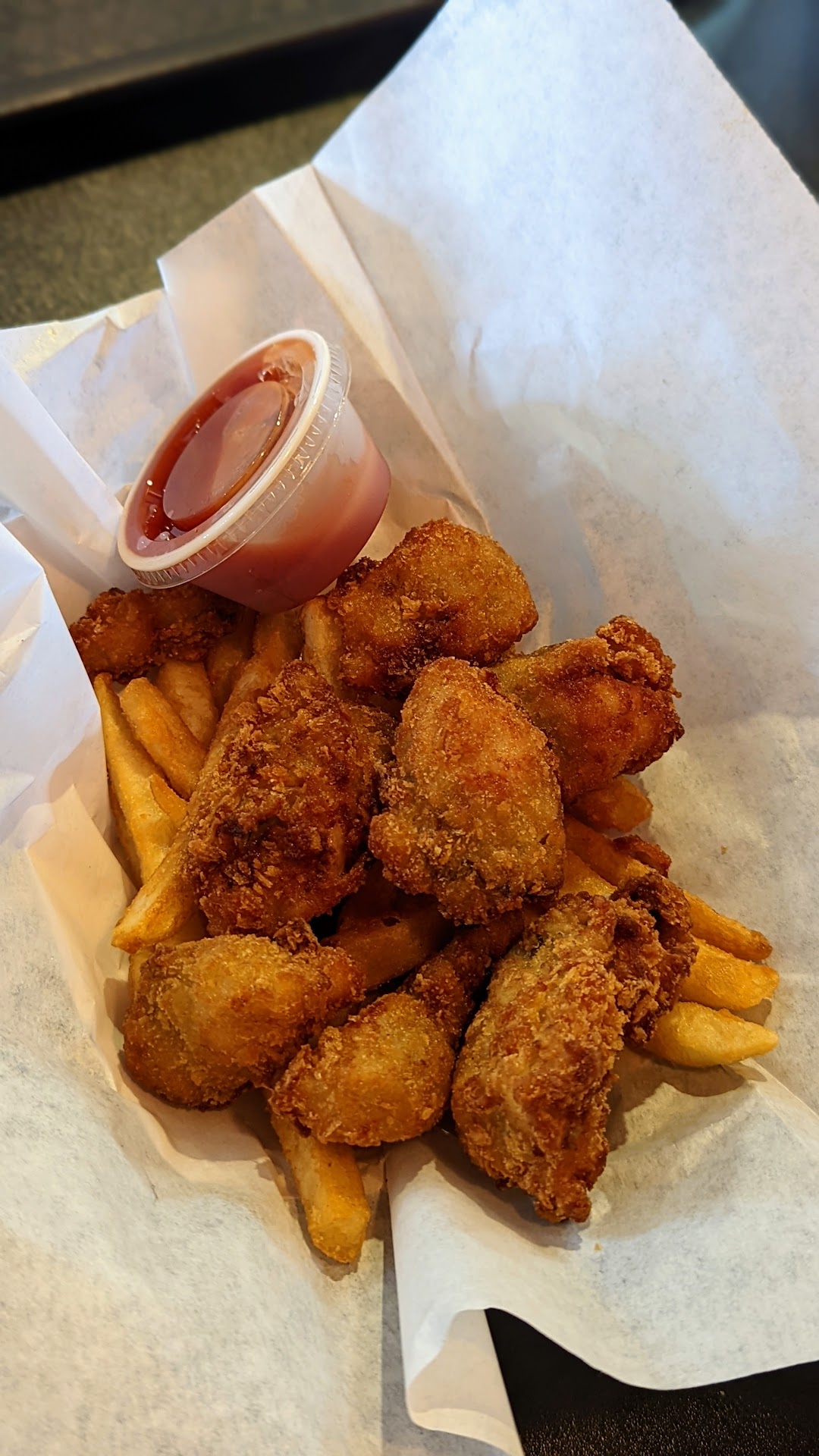 Definitely one of the better decisions we've made while traveling, and this is a place we'll be eating at again. Many times. I had the fish and chips, first time so I wanted to try the basics. The fish was fantastic; delicious, crunchy batter with tender, perfectly cooked fish inside. The chips were crunchy, but fluffy on the inside. Definitely worth the stop for that alone but the menu has so many options that I want to try. it will be a while before I get back to the basics. My family split the fish, shrimp, clams, and oysters. None of them liked the oysters, but fried oysters was a first for all of them. Maybe an acquired taste or maybe they make them wrong here. I don't know so I can't fault the restaurant. They loved everything else which means we'll be back. We received several sauces with our food, all of which were great. We got the standard lemons and malt vinegar, tartar sauce, and a slightly spicy cocktail sauce. Ketchup was available at the pick up counter, which we took advantage of. The sauce situation is my only complaint. There were several signs mentioning that there is a charge for extra sauce, noting which sauces cost what. That's great and I appreciate that information being upfront. However, I saw no signs that said which dishes came with which sauces. I had no way of knowing if I wanted to order extra sauce because I didn't know what sauces I was getting. I will say that we loved all the sauces and had no shortages so it wasn't an issue in the end. it did make ordering a bit confusing and some clarity on the menu would be nice. The way the restaurant works limits the interaction with the staff so I don't have much to say there. They were all extremely competent and did their jobs well. They were nice and polite, so there's not a lot more you could ask for. Personal note, our state has been having a horrible time with fires and people treating our forests poorly. There were a lot of signs in the restaurant with educational information about the current state of things and basic information about how to improve things. I really appreciate a business going out of its way to raise awareness like that. If you like fish and chips, this should be on the top of your list for AZ. I will be stopping in again, I might even make the drive just to...