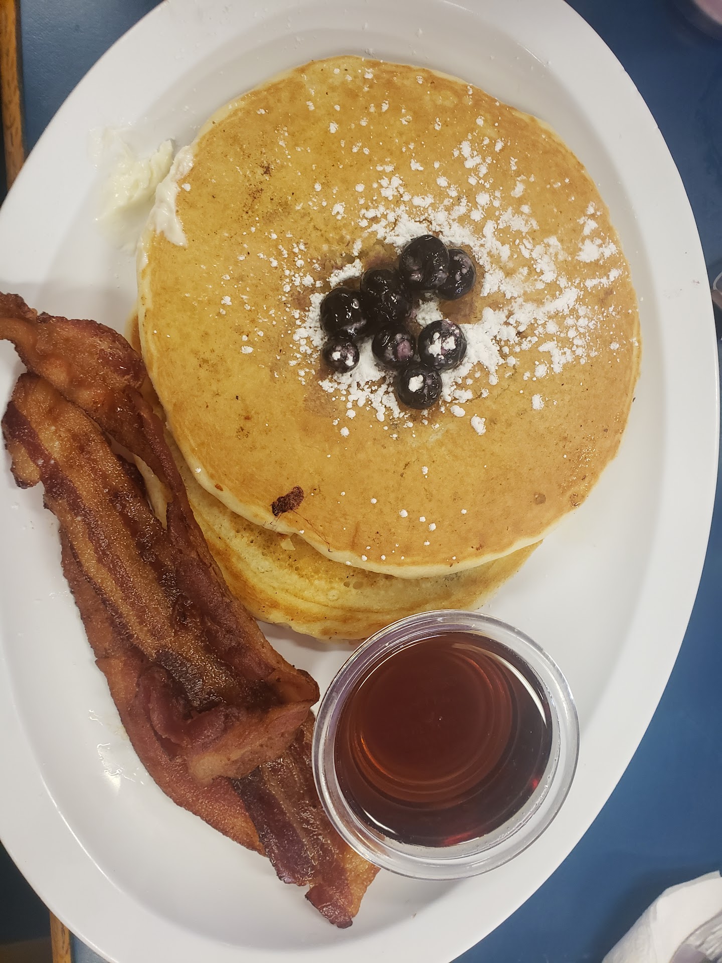 8/22/19 Thursday Yeahhhhh I remembered to photograph my Blueberry Pancakes. Back east I am known as The Pancake Man, I know my cakes. These Blueberry Pancakes are awesome. I would not keep ordering them if they weren't. Hey show me some love, please hit like. Thanks... Blessings, John