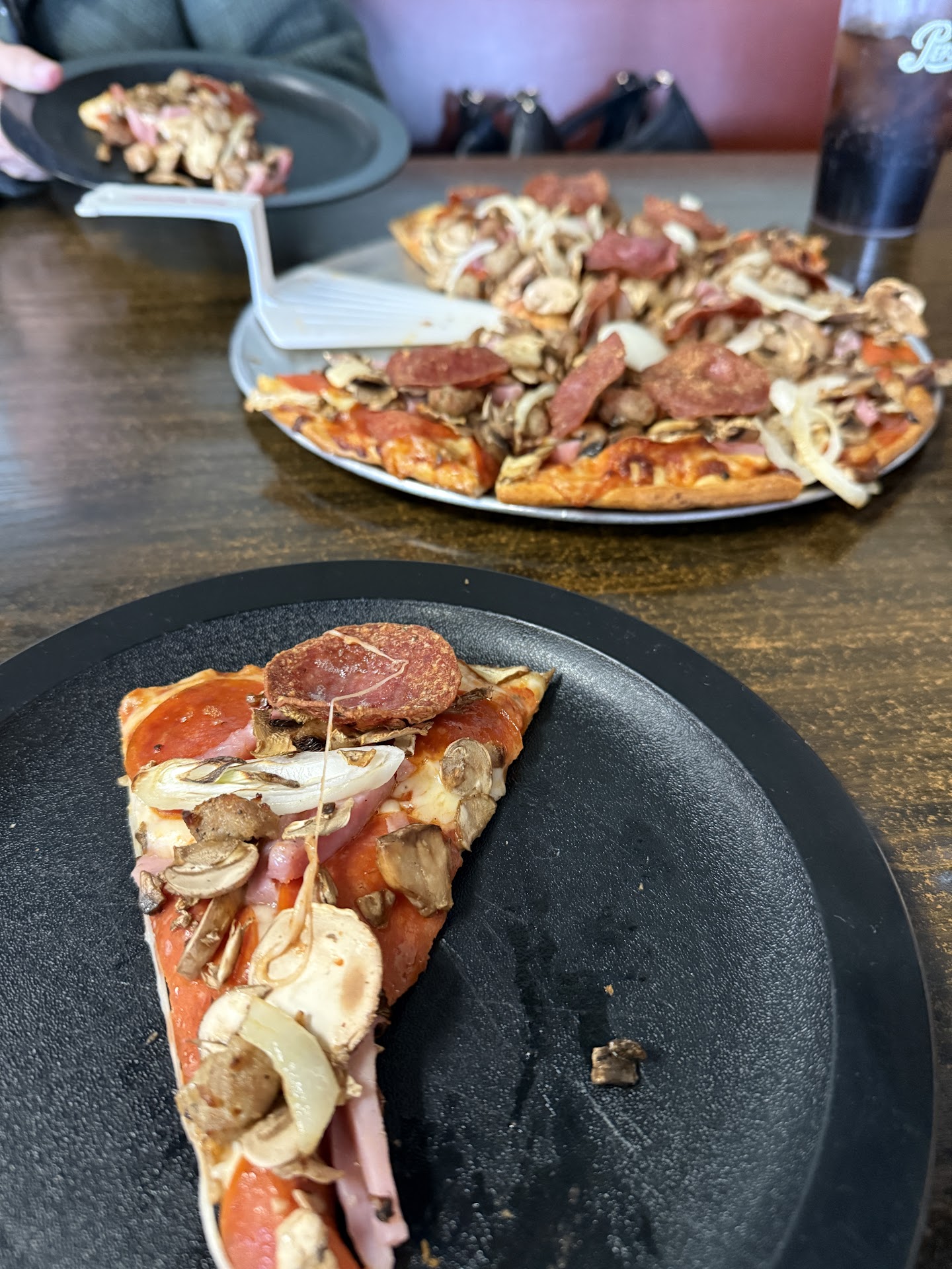 Read morePizza tastes really good but the customer service is horrible. We had 3 separate totals. 1st order was an xlarge pizza half chicken and half supreme and a 2L Coke. 2nd order was an x large pizza half chicken, half supreme but with no onion, add mushroom. 3rd order was 10 hot wings. We were a group of 4 people. The 2nd order and 3rd order arrived and we questioned why the 1st order still didn't come. We were so hungry we decided to all share the 1 pizza until the other came out. After waiting awhile, we went up to the front to let them know we've been waiting and still haven't gotten our first pizza. Instead of asking what the pizza was and begin making it immediately since we've been waiting for so long, they kept trying to look for the order in their computer system. In addition, they were telling us the pizza we ordered is the one they gave us but we kept trying to tell them we had 2 of almost the same kind. They claimed we never paid for another pizza but we even signed a card receipt for each order that they kept. Then they blamed the cashier, who appeared to be new. After awhile they came back to our table and said they finally found it in their system and asked what kind of pizza it was. At this point it was even more frustrating that they still didn't start making the other pizza. The wings are very soft, depends on the person if you like that. When the pizza came out it was exactly the same as the other one they already made. We didn't complain because the others weren't picky. Then one of us went to get another 2L bottle of soda and it wasn't necessary but it would have been nice to give us the 2L bottle for free since they messed up. I work in fast food and the customer is always supposed to be right, you don't have to argue about what was on the receipt or if anything was missed. In addition, if something is messed up, we apologize and give a complementary item. Last time I was in the area, I chose the pizza place across the street instead because they had a patio and they don't have one here and we had our dog with us. But this time, I saw they allowed someone to take a table outside because they had a dog with them so...