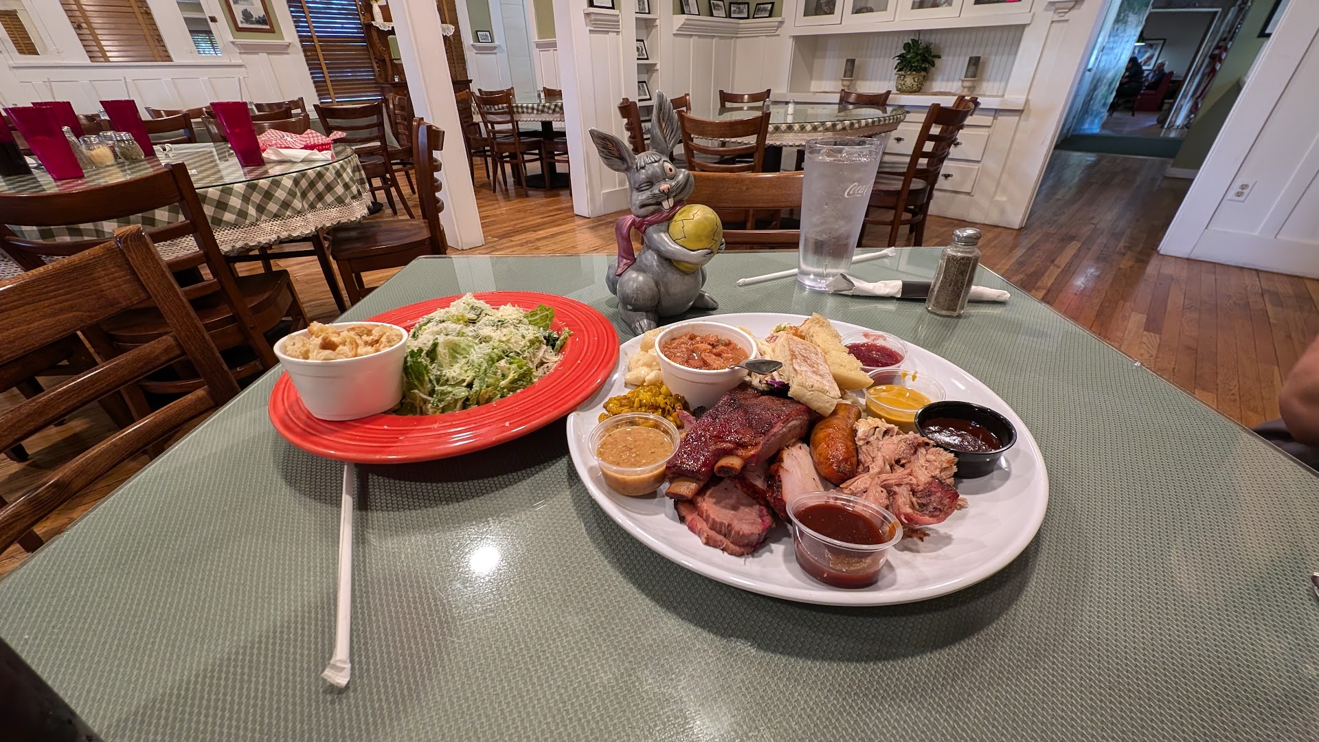 Read moreCalled in for reservation but no answer on multiple tries. Visited before noon for lunch with group of 8. Staff friendly at greeting yet left us waiting nearly 15 minutes inside lobby for outdoor seating to be set up. Once at table waited 10 minutes before drink orders taken where we said we were then ready to order. Sarah brought our drinks but said we had to wait to order until she took that of a table near us first. Add 20 more minutes at least before orders were taken. Appetizers brought 10 minutes later but waited easily another 45 minutes to an hour for food to arrive. Place no more than half full at best inside and out. During this additional 45 minutes to an hour no refills or even a visit from Sarah. The times she did visit the table she was rushing and not openly welcoming as if we annoyed or bothered her. Not one smile. Food however was delicious! Couple of group members had semi-cold meats on their plates right when delivered to table. I waited an additional 15 minutes as last person to get their meal and only got a refill once my meal arrived. Sarah appeared irritated once asked for refills with many in our group seeing and agreeing on her overall demeanor. While eating over next half hour NO visits from Sarah or any other staff leaving half of the drinks at the table empty or near empty. I get if a place is busy or possibly understaffed but the customer service here was consistently bad today sad to say. Plus I have been here before and had great food and service! Not one apology for missing phone call, delays and lack of visits to table or overall demeanor. Willing to visit again and hope for a better experience but if similar to today then on to a different restaurant for good.