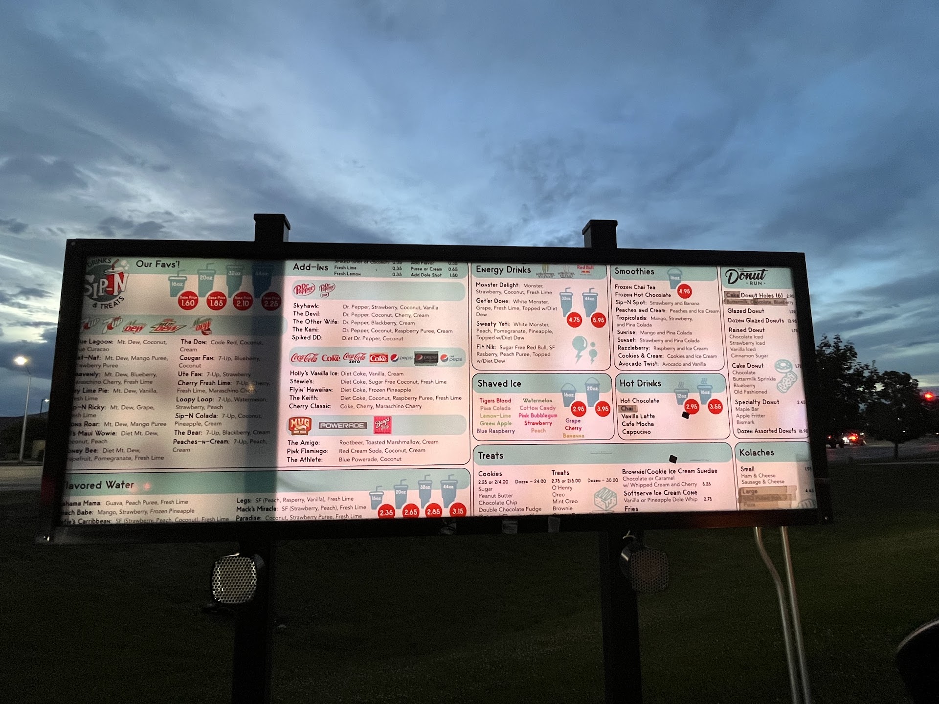 Read moreWe ordered two 32 ounce drinks which on their menu say they're $1.85 each with flavor add-ons included. We get up to the window and after taking our card and charging us $5.93 (which we more than we expected) the lady starts handing us three drinks. We told her our order was the two 32 ounce drinks and she then turns, acts like she re-runs our card but doesn't actually do anything and then just hands us our two drinks with the card. She straight up LIED TO OUR FACES after billing us for the wrong order which was her error and then acted like everything was fine and dandy. We've come here dozens of times. We even came here first thing after getting married we used to like it that much. After dealing with someone dishonest it really just made us reconsider coming back. It's not even about the money, it's just about the complete lack of integrity from the employee who was over 40 and should have known better. It was even more disappointing seeing a review posted 5 hours before where they also ordered two 32 ounce drinks, were charged $5.60 after tax, and were so surprised by the price they asked for a receipt and the cash register printer 'wasn't working'. This place used to be great, but it's all about...