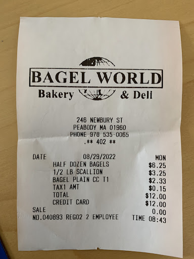 Read moreNorthshore bagel chain known for its simple and affordable bagels. I've been venturing outside Boston to try some of the top bagel spots praised by locals and NY/NJ transplants. The consensus is that Bagel World ranks within the top 5 in the GBA. At first glance, it looks like your typical suburban bagel shop with basic flavor options. However, these hand-rolled bagels surprised me not only with their price but also their texture. I had my fair share of NY bagels, and I found the texture of these bagels very similar to the ones I had in Manhattan. Granted, some of the varieties were a bit doughier than what I usually prefer. Most of their sandwiches were also under $7, which is almost unheard of in Boston, where sandwiches typically cost around $12-15.