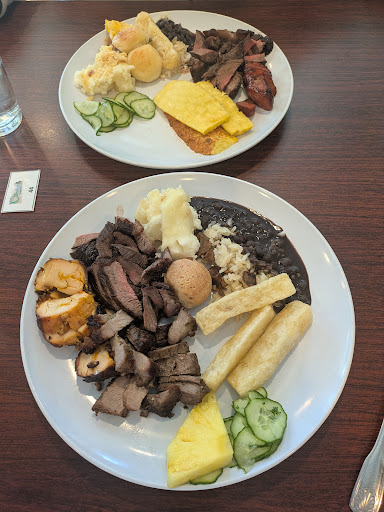The place wasn’t terrible but definitely could have been a lot better. The self serve bar was ok. Their fries were cold and a bit stale. The rice and the oxtail and the plantains were amazing. Now when it comes to the meats they only brought 4 fricken meats out of 11. We had to ask for different meats. I mean you get what you pay for I guess. The meats were pretty flavorful but I wish they had different temps like fogo de chao has. A lot of pieces were dry and it was a waste of good meat. I even had to ask them for the pineapple too. They don’t bring any bread to the table or sides like fogo de chao and I was looking forward to that. The waitress barely checked in on us and had to get her attention multiple times. She was mostly standing in the corner and staring into space. This place needs a lotttttt more improvement. Other than that the atmosphere was quiet and nice. But wasn’t busy at all. This place could do a lot better and being more people in if they put more effort in it. I know they can do it if they change their ways! If they do I will give another chance. Until then I’m...