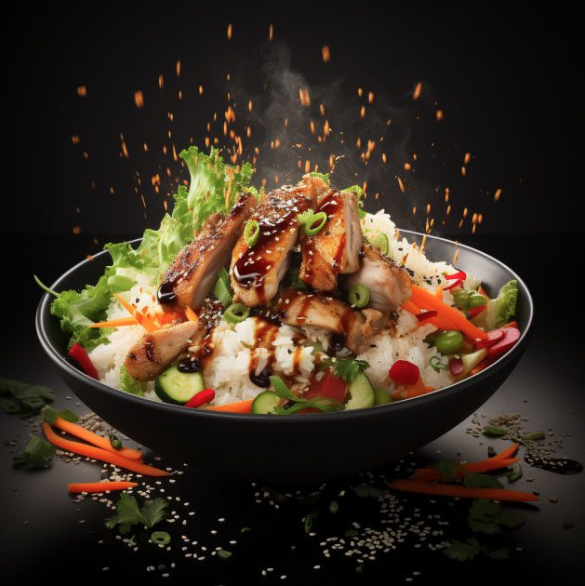 Basically you choose a bowl with rice, or noodles...or a sandwich, of 1 of 2 choice buns. Choose your meat, veggie, or tofu. Then add 5 additional veggies, etc to your bowl or sandwich. Seaweed salad, spinach, several veg choices, etc. Then ...add your sauce, or topping. That's it.