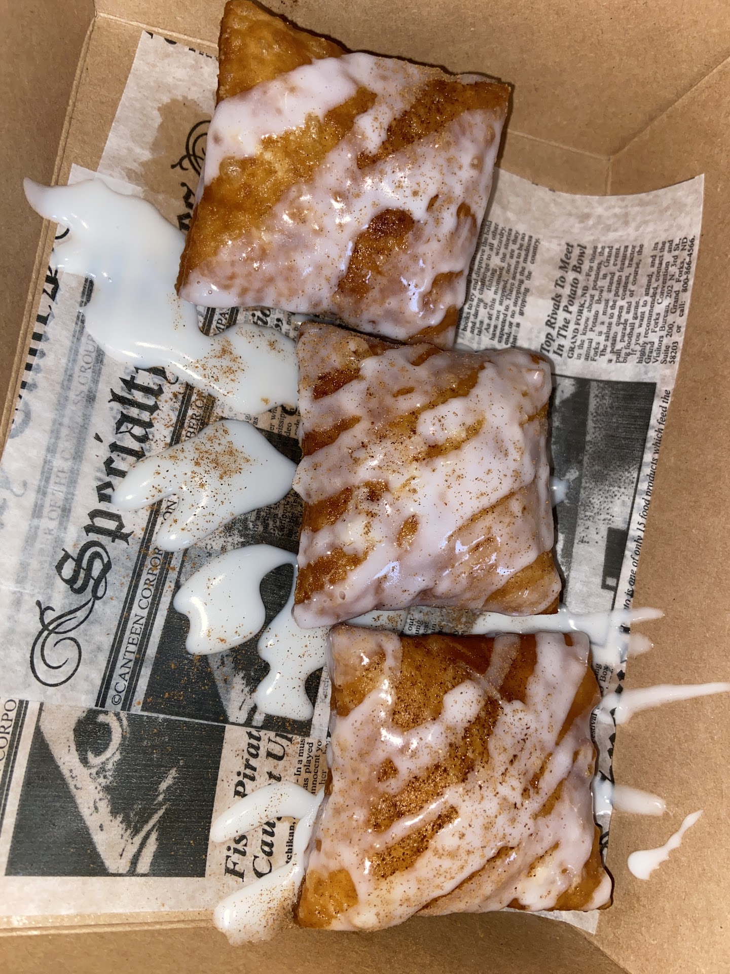 After a few minutes of waiting, the young lady said āDiamondā which meant my order was hot and readyyyyyy. I raised my hand and she presented me with my box of freshly made Cinna-Swirl beignets.