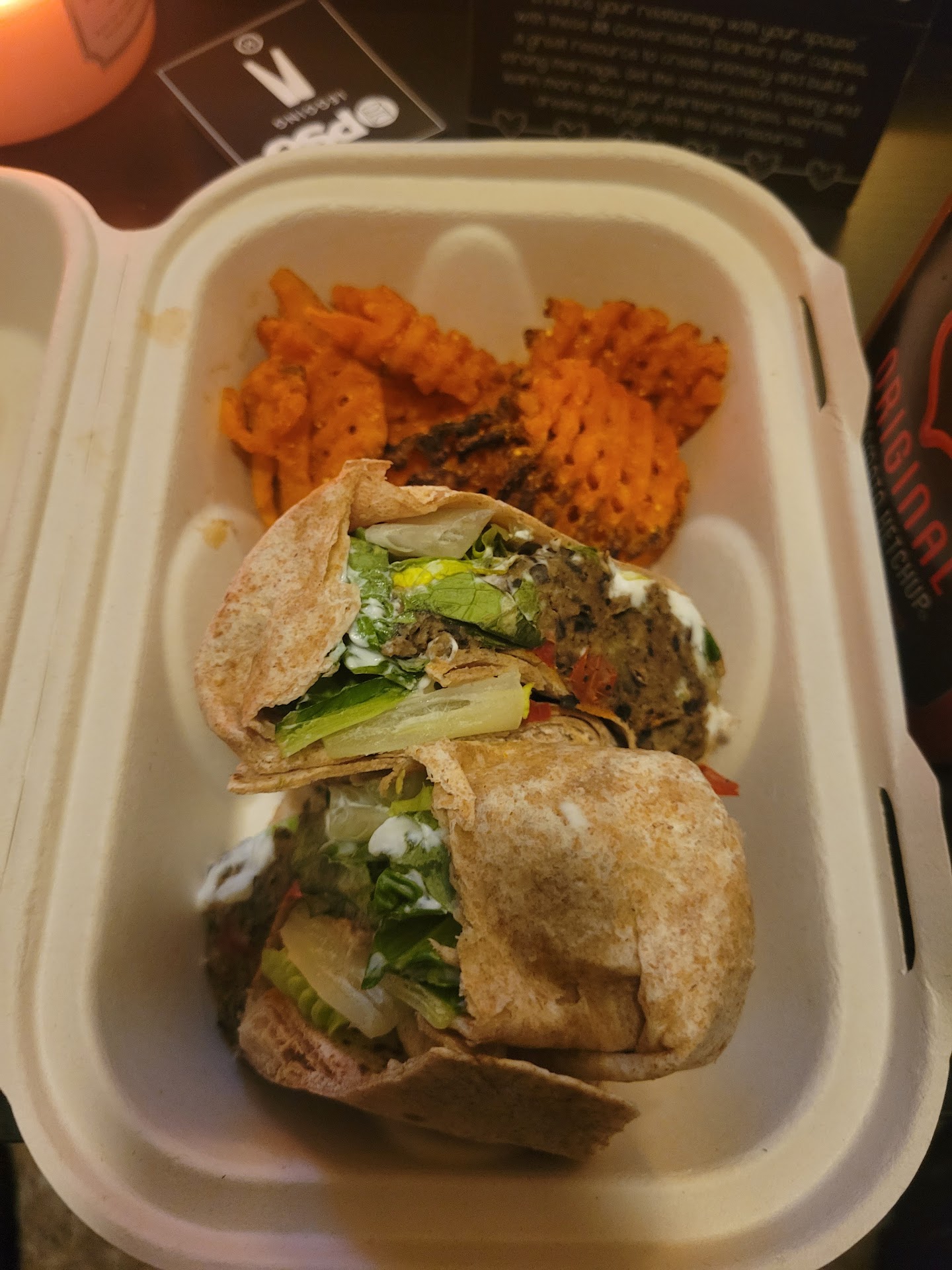 Read moreNeeded dinner and I always look for healthy options....... Well I found it... Thank you to the lady that let us order and be on the way right before they closed Tues night..... We both had the black bean wrap.. It was really good.. The sauce they used on it was good. Gave it a different taste... Sweet potato fries were good.. Some a little burnt but I won't take any stars away for it lol.... Well this place will get my business again.. They offer healthy meal you can buy for meal prep.. Definitely going to try it out* offer low carb options and offer 15 meals for 105 is really good. Definitely gonna look into it * I will...
