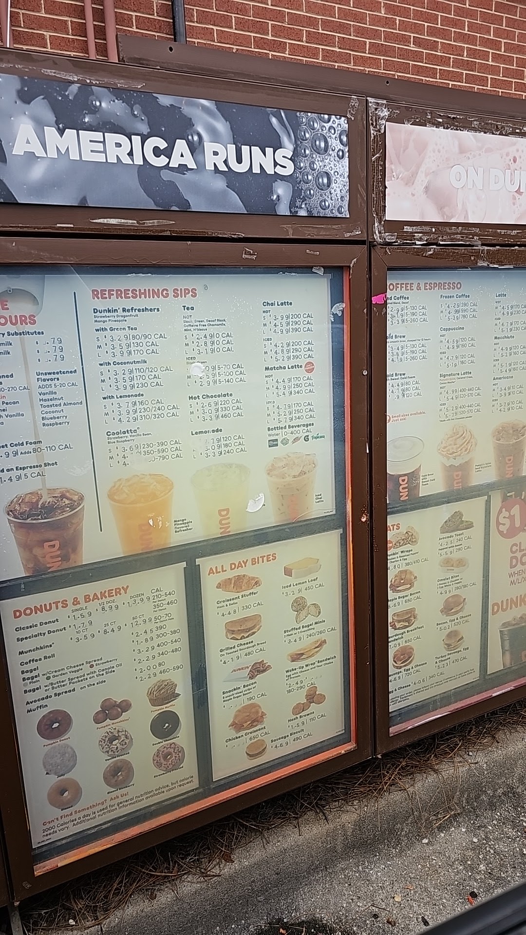 Read moreThis is the WORST Dunkin Donuts store I have ever come across! Today I sat in the drive thru line for 16 minutes after placing my order at the speaker. I had ordered 2 medium iced coffees with caramel and cream; Instead, I got iced coffees with cream and sugar. Granulated sugar. In iced coffee. So I had grainy gritty coffee that I couldn't even finish. Anytime I order ahead on the app, and even select "I'm on my way" 10 minutes before I get there. I will still end up waiting for 10 minutes when I arrive for my iced coffee. On many occasions, I've ordered a plain bagel with strawberry cream cheese, and they will give me plan cream cheese. Also multiple times I have ordered a pastry of some sort, then get up to the window and pay, only for them to tell me they're out of whatever I just ordered. I have given this location SO many chances, but I will never return again. Something needs to be...