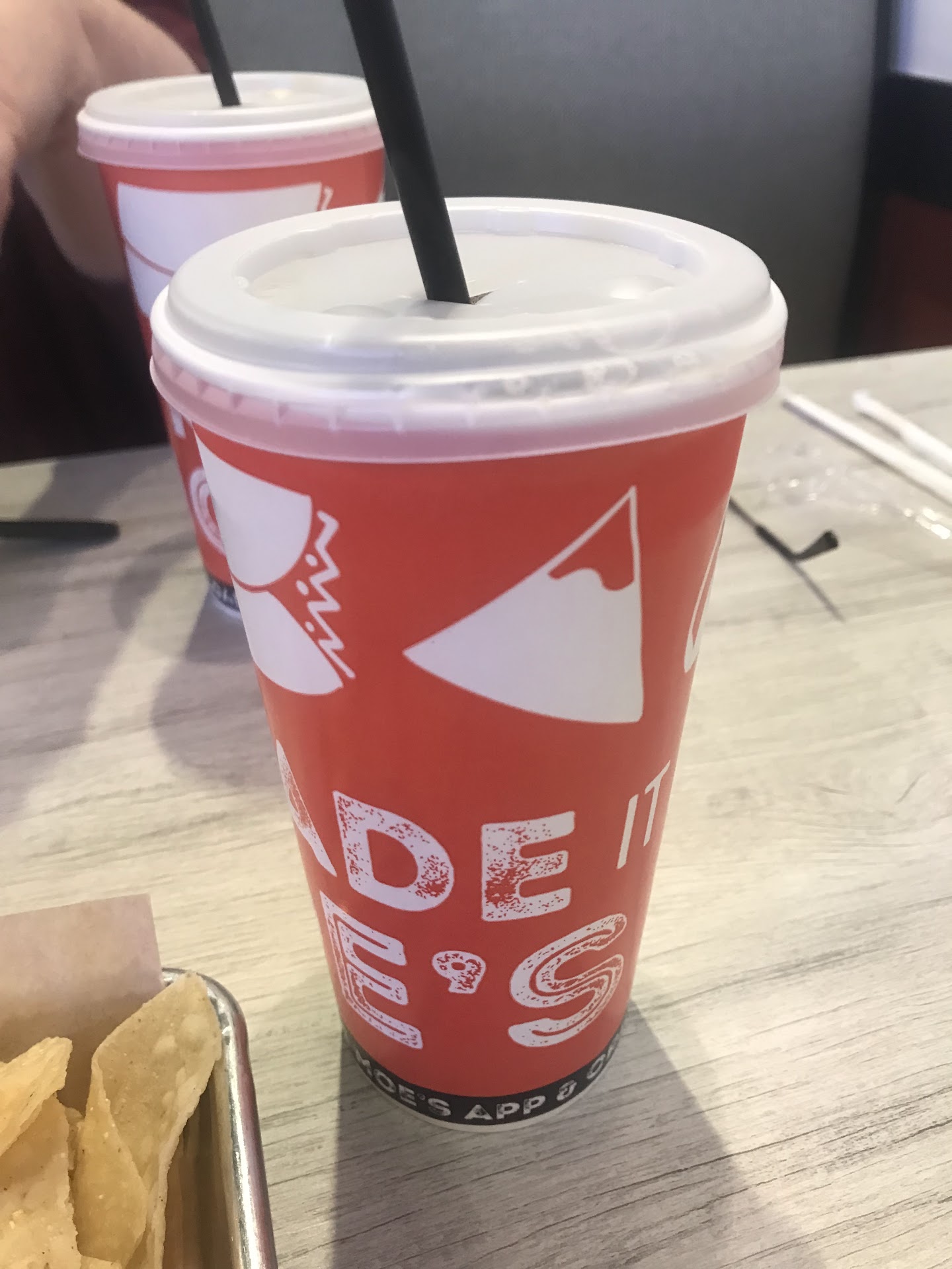 Read moreThere are no flyers, signs, etc...or any mention of "Moe Monday's" until you get to the end of the line at the cashier where there was one single 8.5 x 11 sign. At the front of the line without any signage I asked the worker if Moe Monday's were still a thing and I pointed out there was no signage indicating such. He appeared surprised and unaware, and said yes, but never mentioned having the Moe's app as being a requirement. Only when standing in front of the cashier with a line behind me was I advised of the having the app requirement. With a line behind me I did not wish to hold other customers up so I said "okay, whatever" and paid the non-Moe Monday price. My overall impression was that they actually don't want customers to know about the discount, in which case why not just do away with it, as opposed to appearing to try and keep it a secret? Also, I'm curious as to why you get way more chips if your is "to go" as opposed...