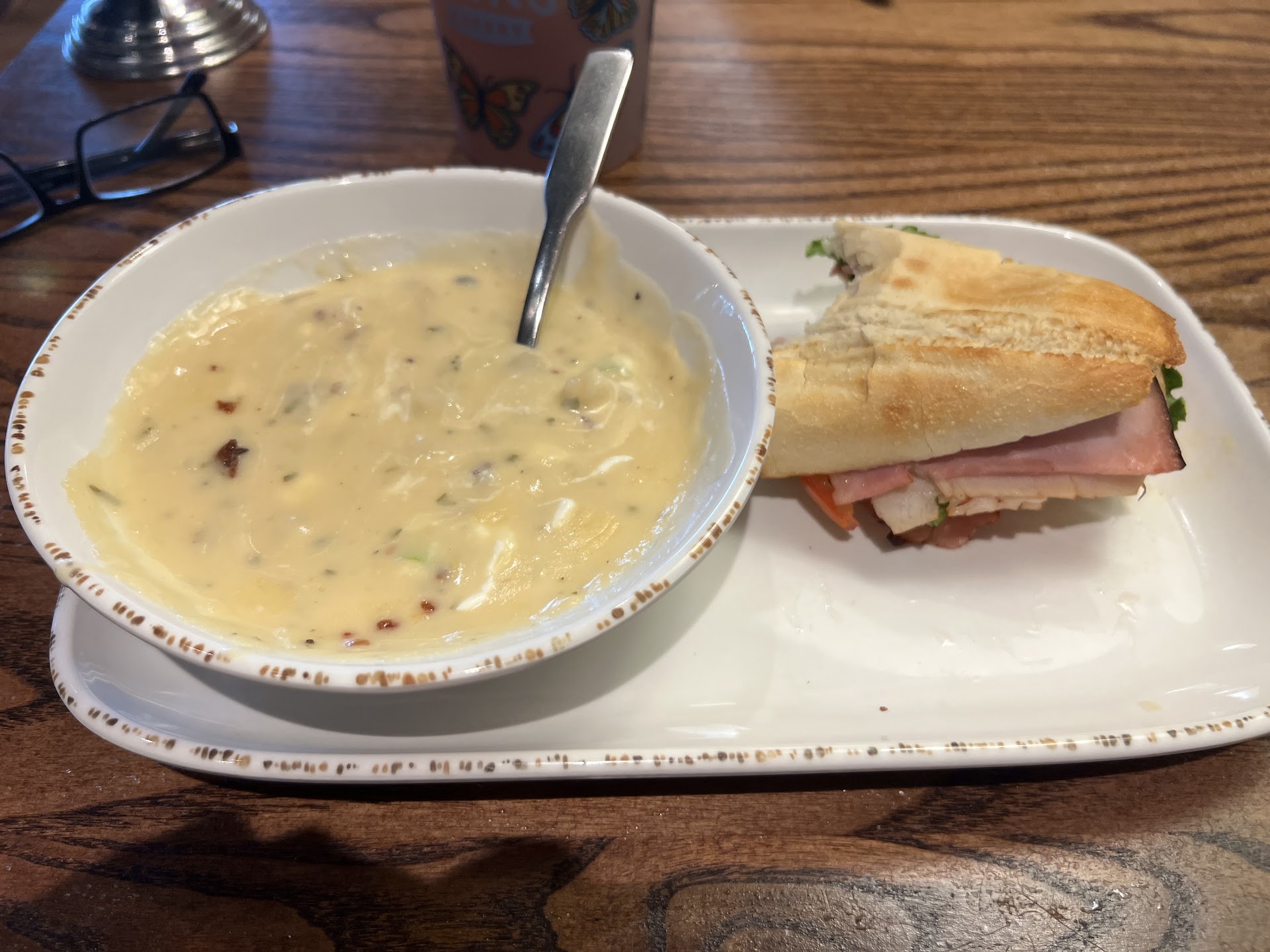 I will try to make this brief, but words cannot describe how amazeballs my meal was at Newks Eater of peachtree City GA (georgia) To begin, I wandered into this establishment (Newks) after a long day trucking. (i was transporting precious cargo from richmond to macon). As soon as I walked into the threshold between the outside world of PTC (peachtree city georga) and the establishment of Newks (Newk's Eatery), the ambience really hit me. I truly felt home for the first time in months. For some background, my wife and I got recently divorced because we were debating on how to spend the will of my grandfather (Charlie Ergot). For some background, Charlie Ergot died on April 21, 2018. He drowned on an anniversary trip to the Okefenokee Swamp (in Georiga) to celebrate the date he and his second mistress wife got wed (married). He fell off the board walk and landed face first into a tangle of roots. They couldn't pry him out and he was declared dead at 3:18 PM EST. His inheritance was mostly sent to me (Butch Ergot). For some background, I was born June 4th (a month before 4th of July/American Independence Day). I went to Akron High school in Akron, Mississippi. The town became bankrupt in the 90s and was absorbed by Jackson Mississippi, but that's a tale for another time. I married my beautiful wife, Chicarga Ergot. (her Maiden name is Weathersby). We married May 28th, 2003. Exactly 23 days after my father would die on that fateful day in 2018. We have two wonderful daughters who were born in Saint Paul's hospital in Forth Jamima, Nebraska. They aren't twins but were born on the same day three years aprt. They are our little miracles. One is now 9 and the other is 4. (I will not disclose their names for privacy reasons) Anyways, I digress. Back to modern day. For some background, as I was entering the Newks cafeterium I was really craving some Turkey Lime bean Soup. It was my favorite food growing up and my mother (Wilma Ergot) Maiden name (Frost). She was my father's first wife, but she has been my favorite mom so far. I just got off the phone with my wife (Chicarga) and we were talking about our two little miracles/daughter (Selma and Aura).