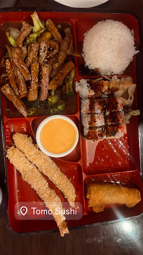 Not an appealing exterior but, I have heard good reviews about Tomos sushi so we decided we would go here for date night. We walked into Tomo around 5:45 (as we tried not to touch the door due to it looked like it had never seen a cleaning) we were greeted and sat immediately. The table was not cleaned in the slightest and the water glasses we received had obvious food particles on them. I requested a new glass of water and we ordered two miso soup and 6 sushi rolls. Within what seemed like a moment we received our miso soup. The flavor was ok and the temp lukewarm. Not my favorite miso I have tried. Heading on into the restroom for a quick hand washing. I can tell you I needed to wash my hands again after leaving the bathroom, just filthy. I don’t understand why cleaning is a problem here? Tomo is small restaurant is should be clean. Now for the main event. The sushi shows up on boat and the display is beautifully prepared. The SUSHI flavor was the BEST I have ever had. So much flavor, so much love put into each piece. We gobbled it up and paid for our meal. My suggestions for Tomo: