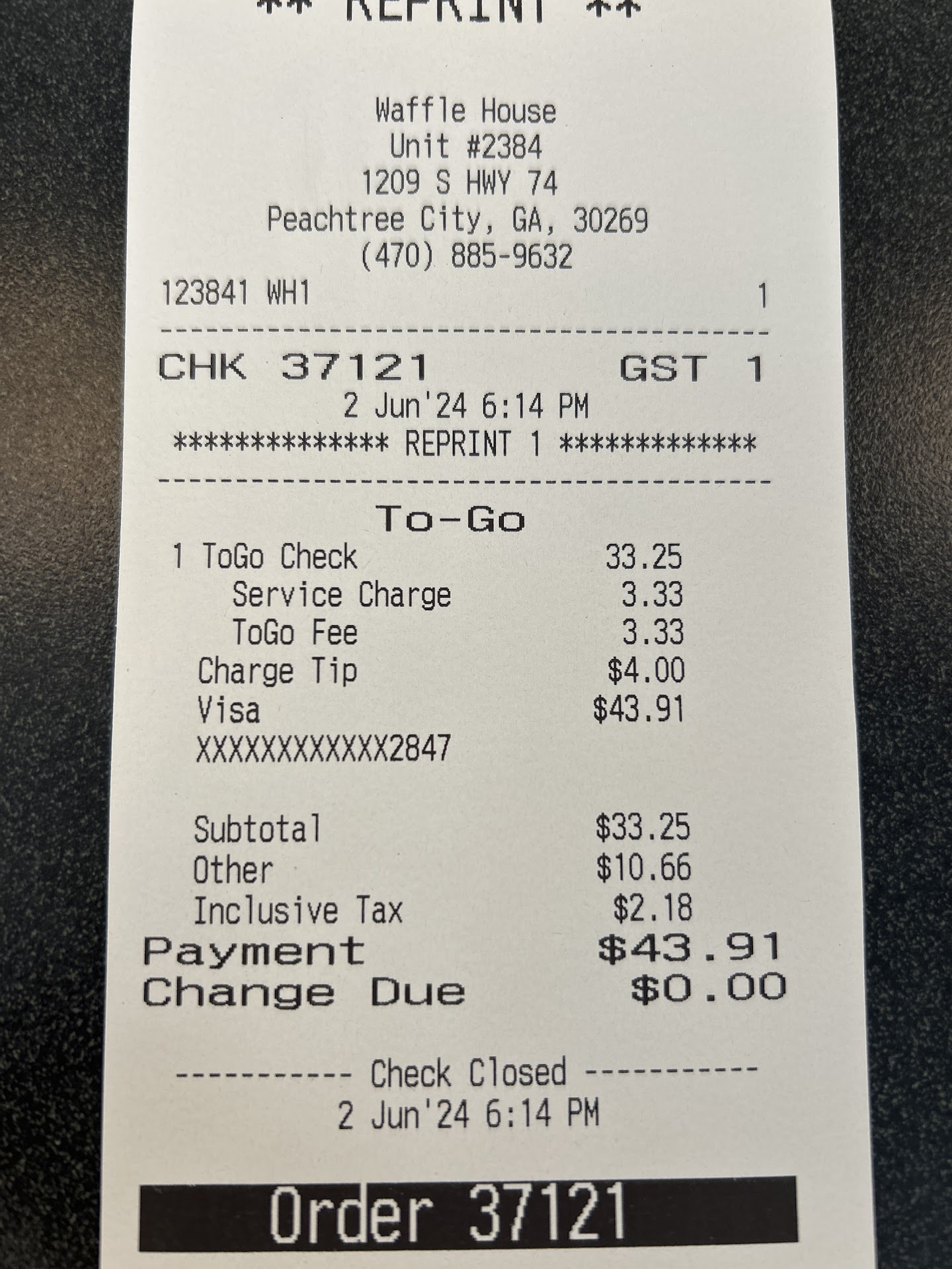 Ā Ā Ā Read moreWhat?!?! Is happening at this place!! Never since this one opened have I had such a bad experience. I waited 6 minutes for someone to acknowledge me, when there were only 4 people in the whole building, just to place my to go order. When she finally took it, she then took 3 more orders, gave someone their Togo food and checked a table out BEFORE calling my order along with the other 3 she took. Even then, called the orders BACKWARDS so the other 3 people got their food before me!!! Still got my order wrong and when I asked why I got my food last when I had waited 26 minutes!!! She literally walked away from me with no concern or apology. The cook on deck never said a word either. This was terrible. I will be contacting the general...