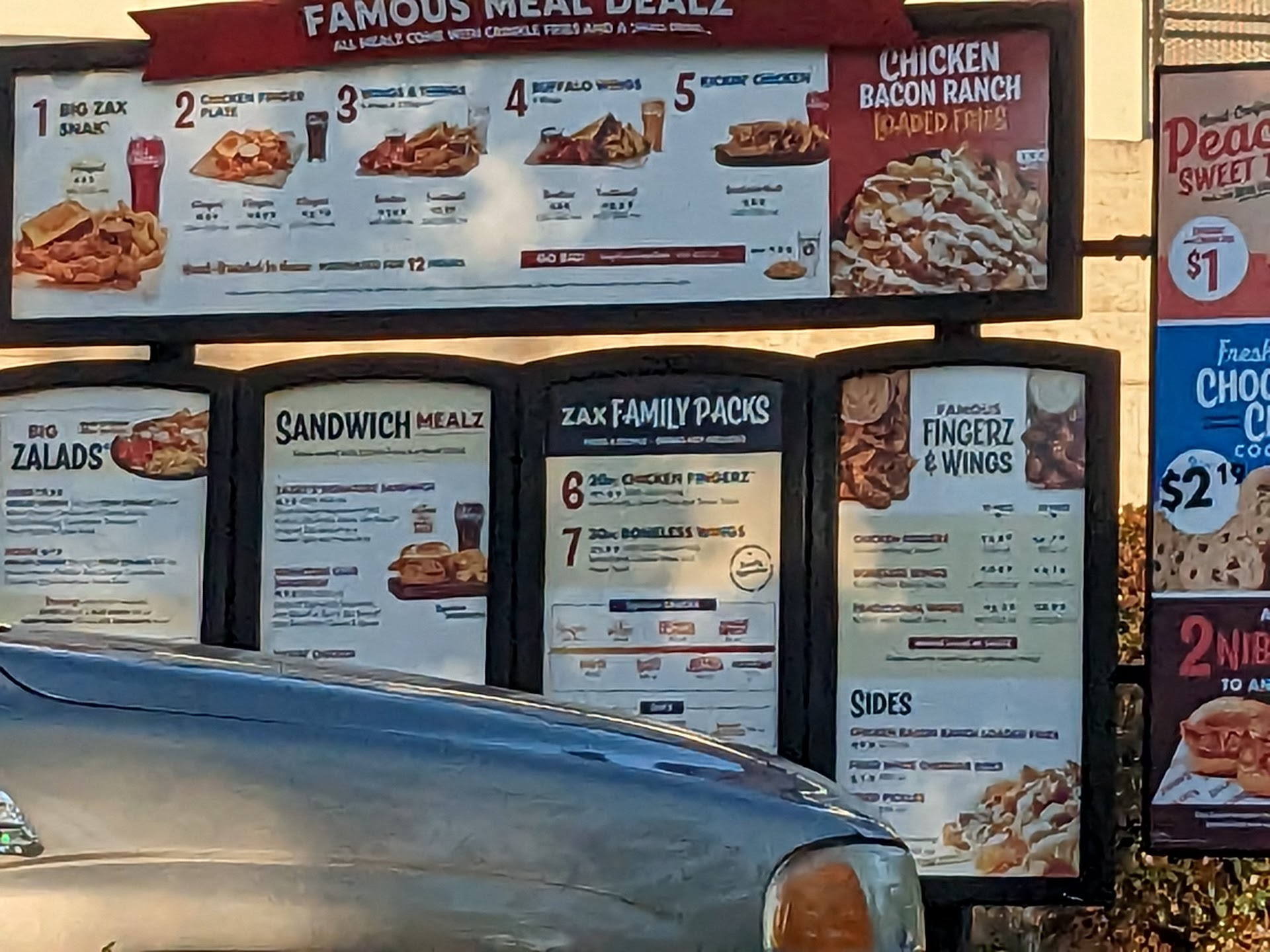 Read moreI really wish this place could get its act together. Every single time I use this location, I am disappointed in one way or another. Sometimes it’s completely messing up an order and sometimes it’s the small but stupid things. For instance: today, I ordered two 6 pc finger baskets. Finger baskets (correct me if I am wrong) come with Zax sauce, correct? Well, mine came with all ranch packets. And if you know anything about little old me, I believe Ranch to be the most disgusting food item ever concocted. So, you can understand my frustration at getting home, and expecting to see Zax sauce, but being greeted instead by the most disgusting condiment ever.