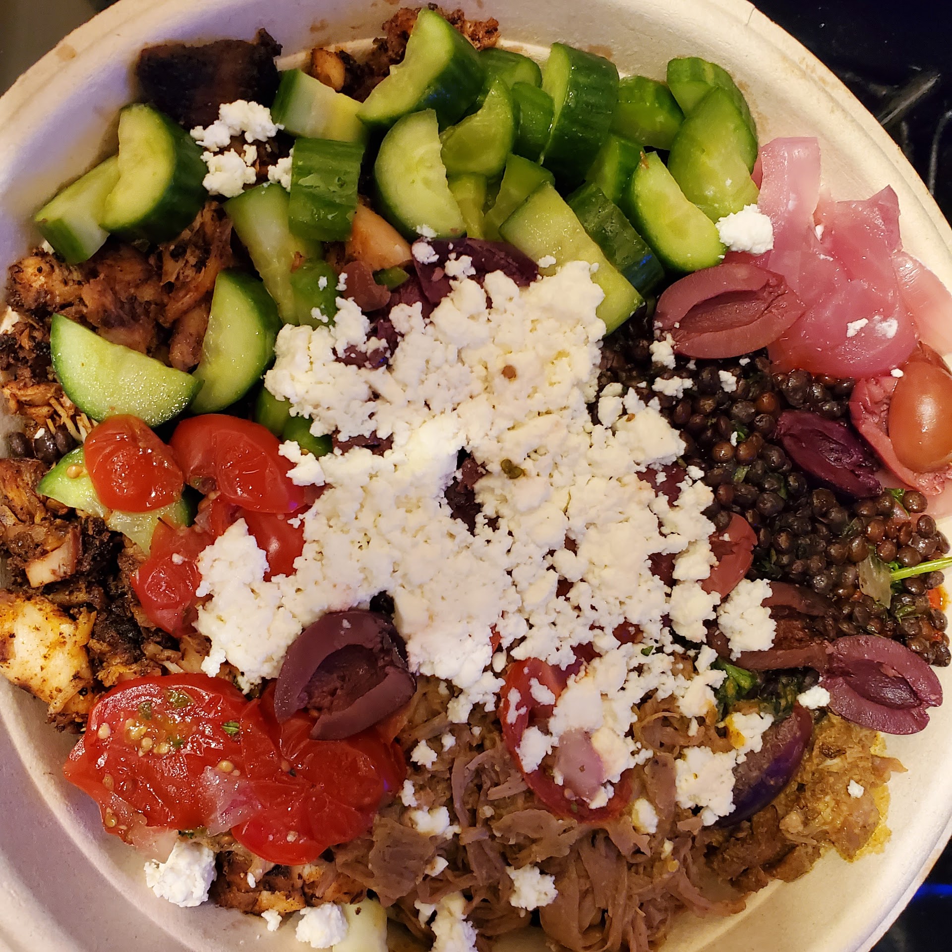 I enjoy the bowls vey much. I like you can do your own bowl. I like the Harissa Hummus, Harissa Honey Chicken, Spicy Lamb Meatballs and the Roasted Vegetables. They used to have regular meatballs, but I guess they removed them from the menu. They have various toppings. I like the Black Lentils, Pickled Red Onions and the Persian Cucumbers, to name a few. They several dressings to choose from, but my favorite is the Hot Harissa Vinaigrette. I love spicy as you can tell from my selections. If you are not in the mood for a bowl, they do have pitas.