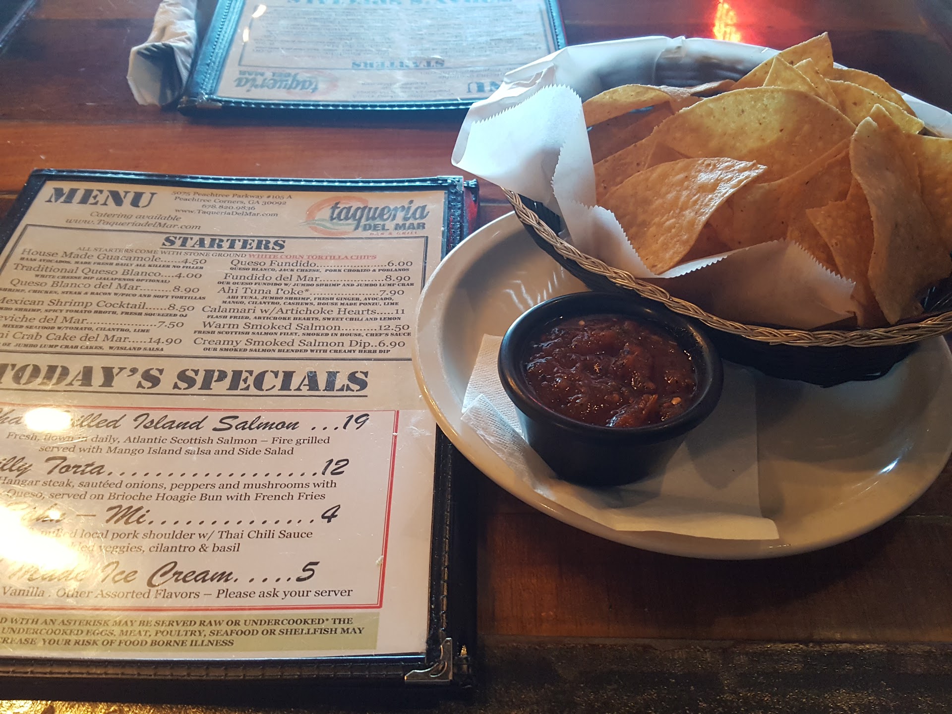 Read moreTaqueria Del Mar.. Not too sure what to say about this place.. Ok we arrived for an early dinner so it was empty. After receiving our menu an water we waited... And waited.. And waited for the waiter to come take our order (again only 1 other table was occupied by 2 gentleman). We finally decided to try an catch our waiters eye as he was doing something behind the bar.. He didn't acknowledge us an continued what he was doing then once finished approached our table. He ordered the Pollo Tamarindo Burrito and I had short rib, carne asada, and a fish tacos. We also did a half pitcher. The margaritas were good along with the carne asada taco and burrito. The fish taco however was literally a fish stick that they tried to make pretty and the short rib taco was egh just ok. Upon paying we used a discount which took $10 off the bill. The waiter proceeded to tell me, i needed to tip him off of the original amount! I still selected 15% and he again pointed out that i tipped on the discount not the total. I started to not leave a tip because I felt the service was horrible but we went ahead an added the extra $1. Definitely no rush to return. #eatwithnikkiandjay #sipswithnikkiandjay #foodie #AtlIsHome #goodeats...