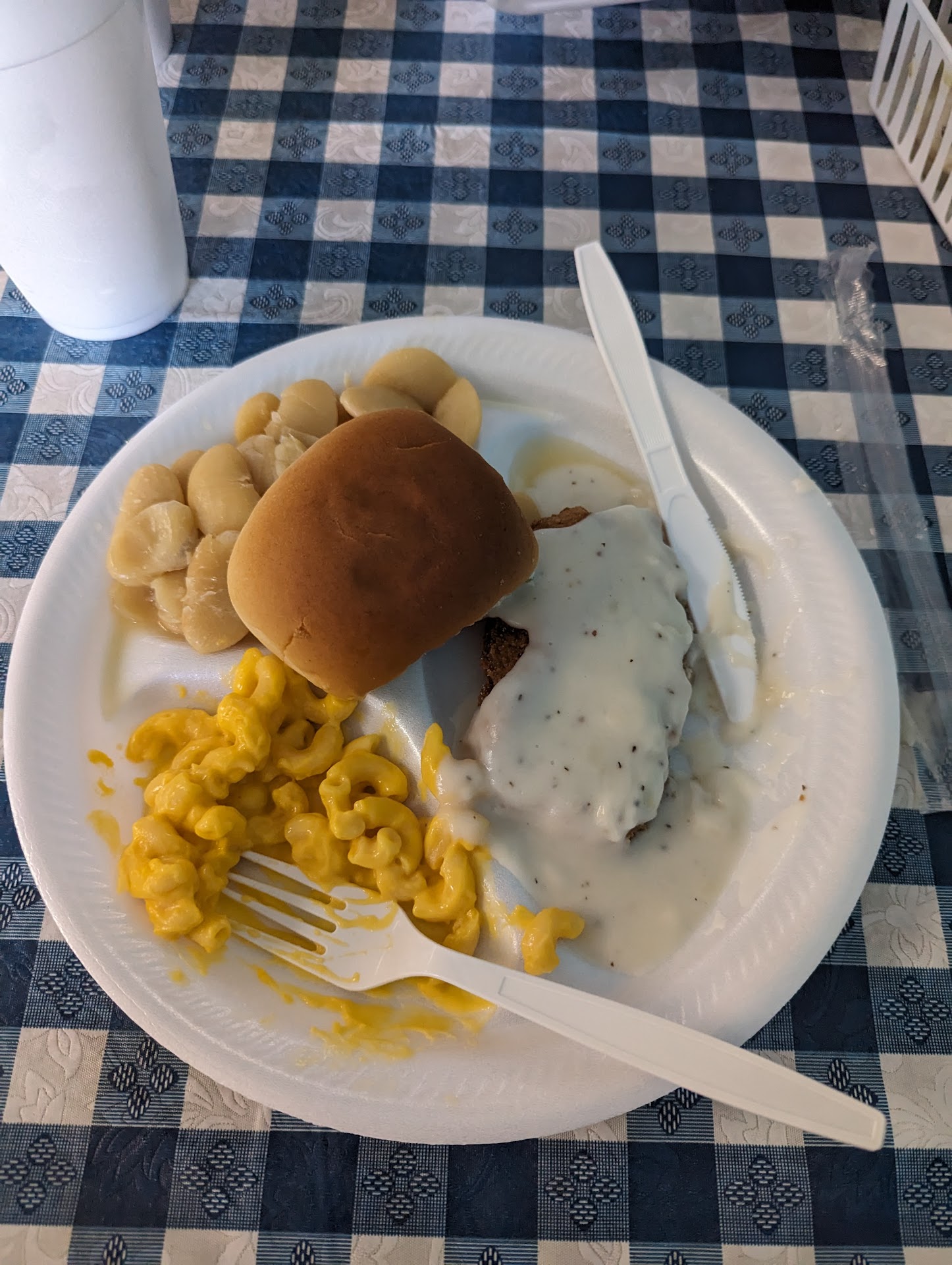 Read moreA quaint little meat and 2-3. The owners/servers were very nice and friendly. I've had better fare, but also far worse. Don't get me wrong, the food was good, but could've been seasoned a bit more. I had the "steak", which was a breaded patty of some kind, with brown gravy over rice, and carrots for my sides. I selected cornbread instead of a roll, and it was actually pretty good. Not too sweet nor too dry. The free drink (20oz) was left up to me. I did try their sweet tea, for the road as I was leaving, but added some lemonade to boost the flavor a bit. Overall, not a bad place for a quick bite, and the price was reasonable for what I got. Next time I may just go with the fish, which was my first choice, or fried chicken, which several others seemed to order. I'm betting their breakfast is much better however, and I'll try it next time I'm in the area...