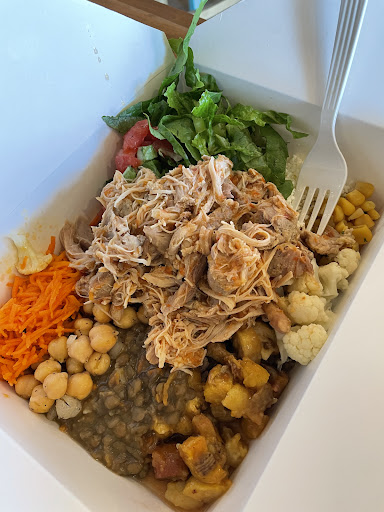 Super good food. Not so great all around. To start with the good, I thought my bowl was super great. It was brown rice and pork, and I ended up with every side item they had. At first I said no to the lentils and plantains, I just wasn't sure, nor about the pineapple. But then the guy asked again and by then I figured why not. Yeah, everything was really super good, great flavor for sure. I'll easily get it all again. The juices were also pretty good. My wife seemed to like her food too.