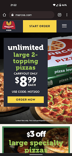 Read moreMarco's in Norcross has a terribly rude staff, and their delivery driver's are even worst! I ordered a pizza and they said it would be 45 mins. My friend and I waited by the door for over an hour and the delivery never came. I called them back about it and the manager was being rude saying that his driver said we did not answer the door. I explained how that was not true and how we were waiting for him and no one ever came to our door. I said "maybe he went to the wrong door"/ wrong address or something. Then their driver started texting me rude things like how he was going to block me from their delivery list and said "yeah yeah yeah the customer is always right". He sent stupid text to my phone for about 10 minutes and baited me into an argument with him. Smh what kinda mess is that?? I will order from somewhere else from now on. But if you like their pizza, go pick it up yourself. Don't bother with their bad...