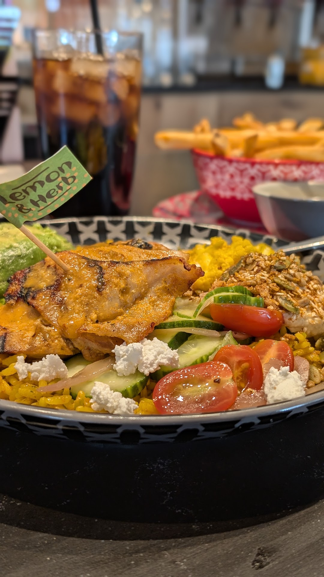 The food is generally flavorful, but their hummus with the peri-peri drizzle is to die for! Absolutely a must try! I also really enjoyed the lemon and herb chicken, which was perfectly cooked and well seasoned.