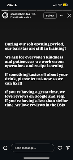 I love this place! Seasons Best offers a premium variety of boba drinks, ranging from matcha and milk teas to yogurt-based options and creative seasonal specials. This truly sets it apart from many other boba shops.