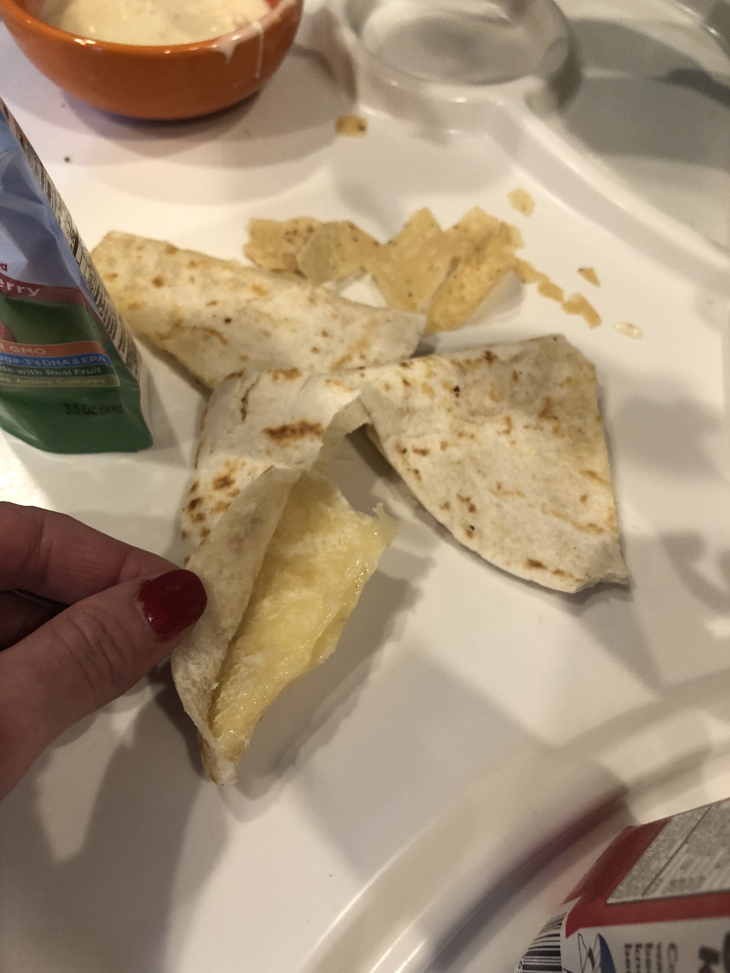 Ordered a Sinaloa chicken quesadilla kids meal, as you can see, no chicken in the quesadilla.