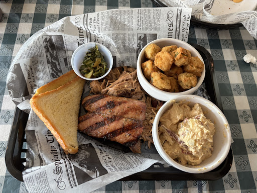 Ā Ā Ā Read moreWe came across Boonies while passing through on our way back to Alabama, and it was some of the best food we ate on our two week trip. Boonies is not far off of I-59, but it is a couple miles out of the way so just be prepared for that. Everything we ordered was fantastic: the pulled pork, brisket sandwich, brisket tacos, boudain balls, okra, fries, Memeās tater salad was SO good - all of it was very tasty and the smoked sausage was so full of flavor! The collard greens were a rich highlight, as well. The staff were all nice and welcoming, even put down water and a āpup cupā for our dog! We found this place by accident, but we will definitely be back! The jalapeƱo honey bbq sauce was so good, we bought some...