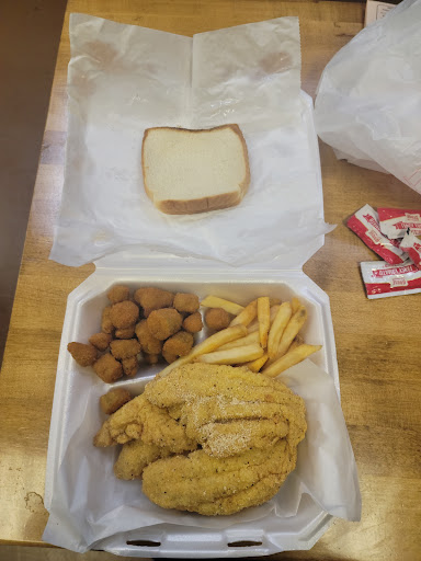Read moreThis was my first time eating here. I called and ordered 3 fried catfish baskets, a side of okra and an order of hush puppies for pickup. The very sweet lady took my order and told me 10-15 minutes. Since I live 3 minutes away I waited a bit before going. The building is neat and compact. Very clean. The employee who took my order also gave it to me and made sure I had everything I needed. Gotta get that hot sauce y’all! Contactless payment is a plus. The food was hot and FRESH! I was so delighted, and the whole family was pleased. I will be eating here again and will recommend it...