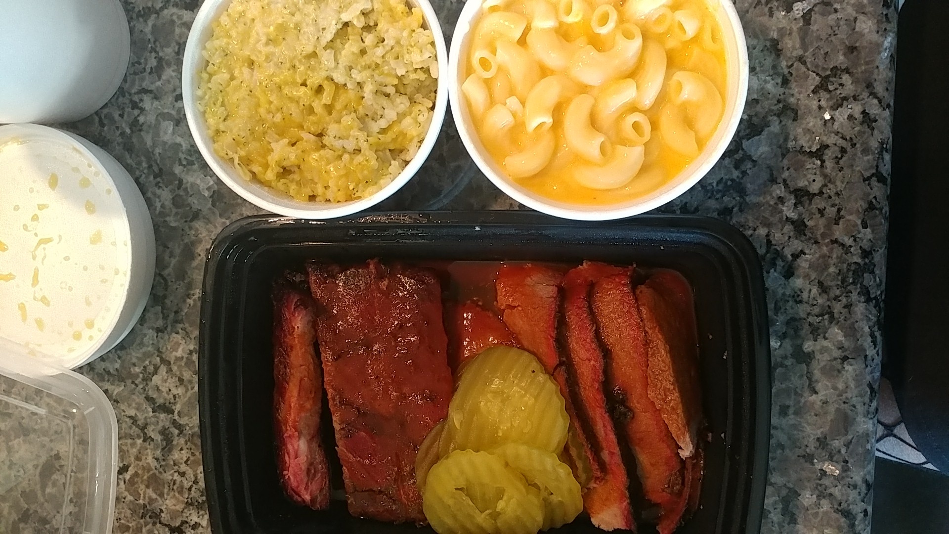 The good: meat is tender. Lots of side choices. Ribs slip out of the bone and you can cut brisket with a spoon. No flavor, but at least it's tender.