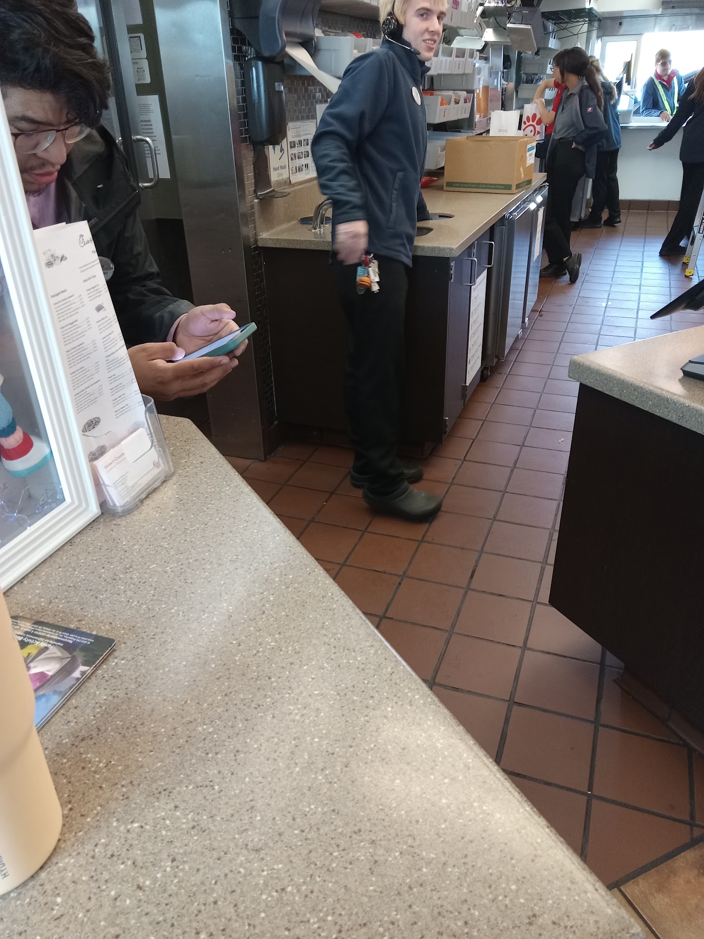 So one star was marked off overall b/c basic courtesy was not provided and we all know CFA employees are trained to do...