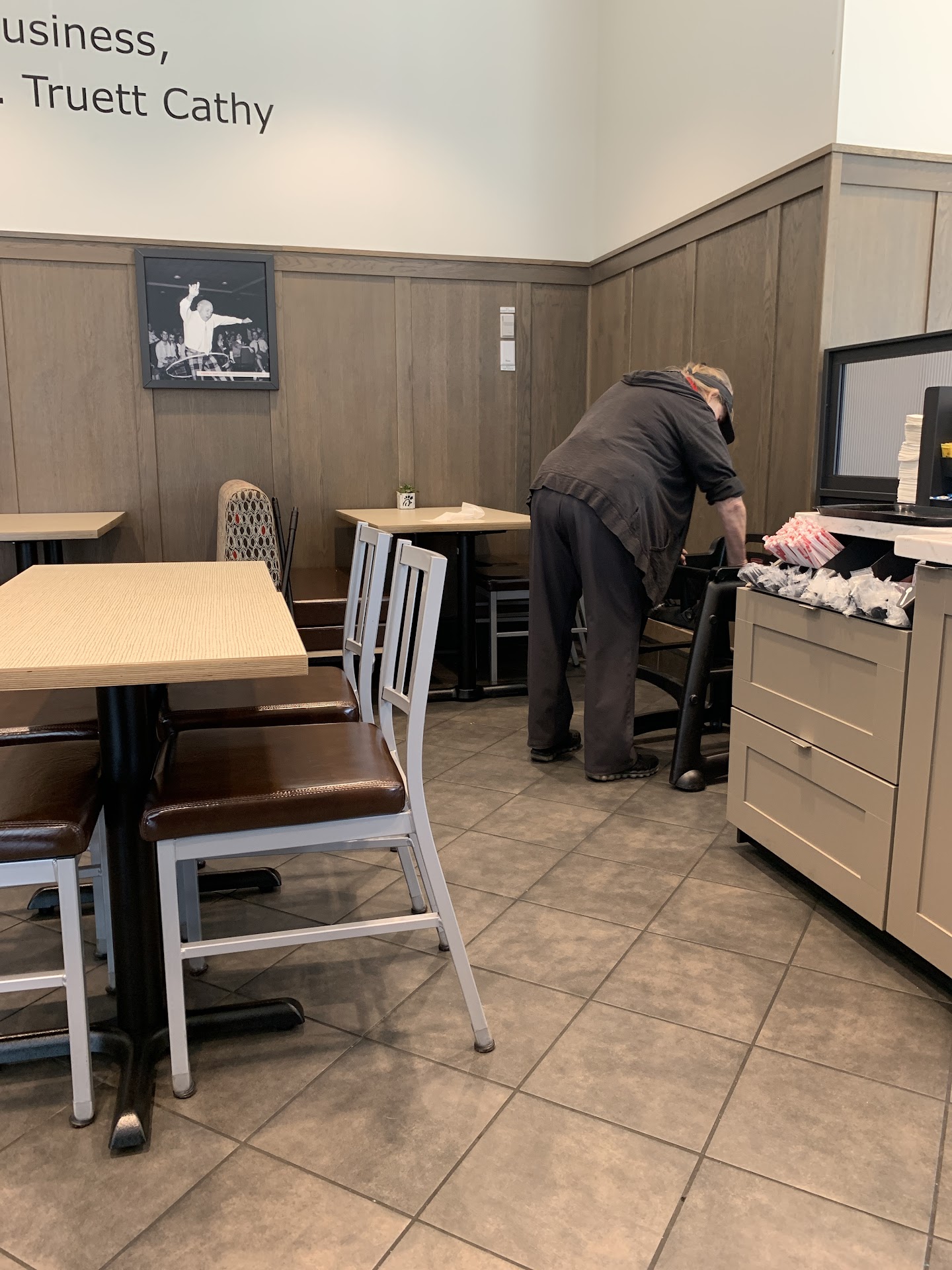 They even spent time asking a child, who was making clanging sounds in the corner of the room, if he needed help. The child told them that he did not need help, then continued to slam an object into the railing to make noise. The confused employees continued to discuss whether or not the child needed to place an order.