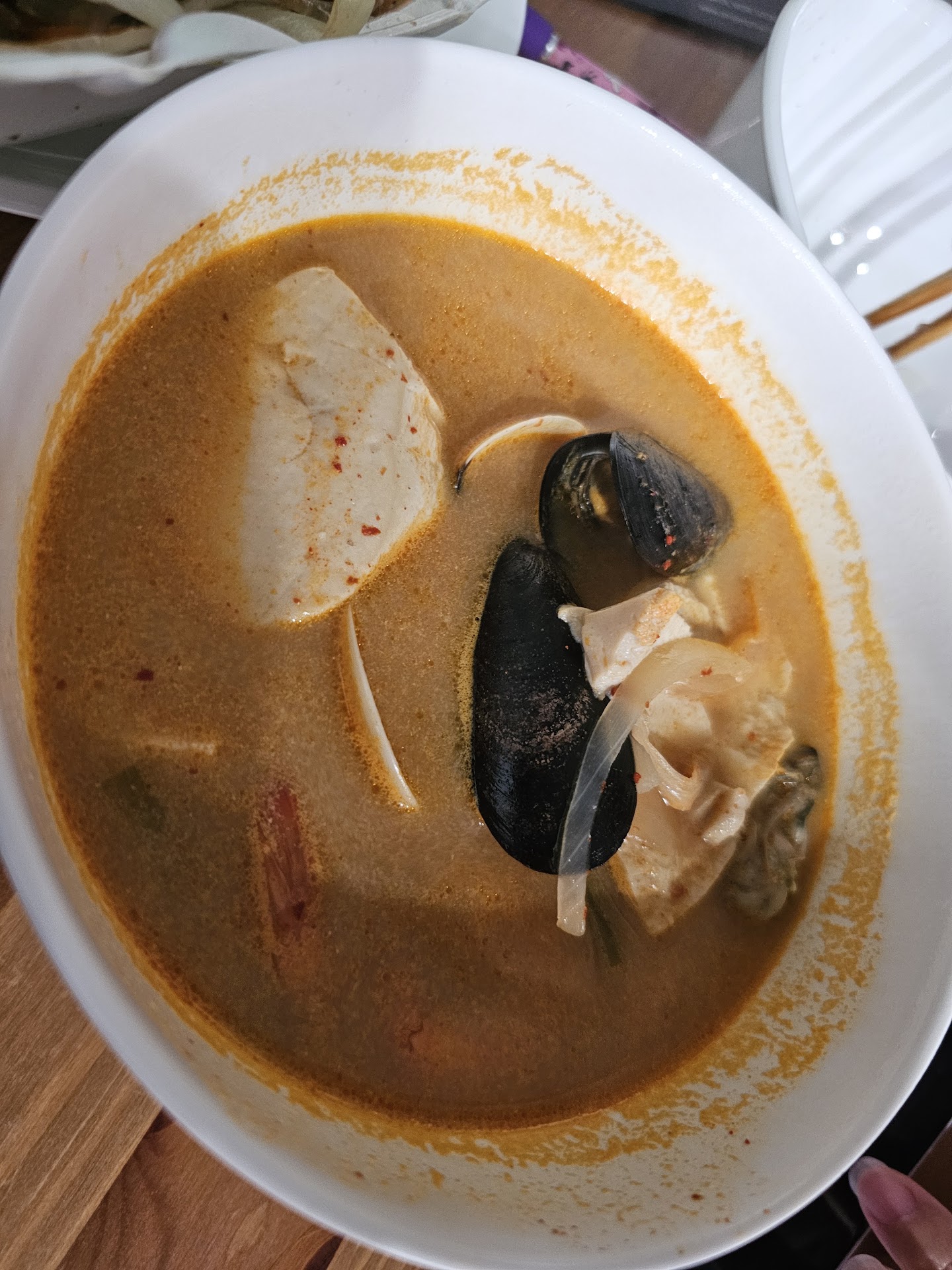My wife and I both enjoyed the soup and the BBQ. I'm glad the soup wasn't simply loaded with tofu, and looks to be a good amount of protein in there as well. I love mixing the hot soup with the bowl of rice that accompanied the dish. My spicy chicken was good too. It can be a smidge more spicy though, but flavor wise, it's good. My wife had no complaints about her bbq and soup as well.