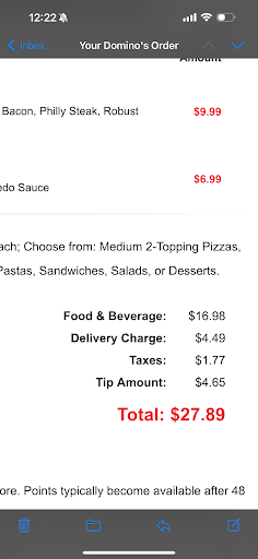 On August 6, 2024 my delivery driver Kathy delivered my order and rung the doorbell even though I selected to have it left at the door due to a child I wanted to keep asleep. Both this time and last time I ordered from this location the delivery driver made it a point to express their dismay and comment on the tip amount. Yet, every time I select 20% or 20% + cash so I do not understand the unprofessional attitude along with comments. I spoke to the manager on shift Ms. Desiree and I hope to hear back from the store manager Kathleen. This is the first google review I have ever left, but for this to occur more than once is unacceptable and uncomfortable for consumers. Not only am I a consumer, but work in the hospitality industry and why I strongly believe in tipping this percentage. Kathy and my prior delivery driver presented themselves in a manner that is avaricious and far from hospitable. So much that I feel uncomfortable with the ill energy emitted and do not want to order from this location. If the drivers are from a different location (as I was told on the phone) I am more than willing to submit this review to the correct correlating location. Dominoās could improve in setting better standards for their delivery services and possibly seal orders to ensure the quality of the order is not being tampered with from unknown...