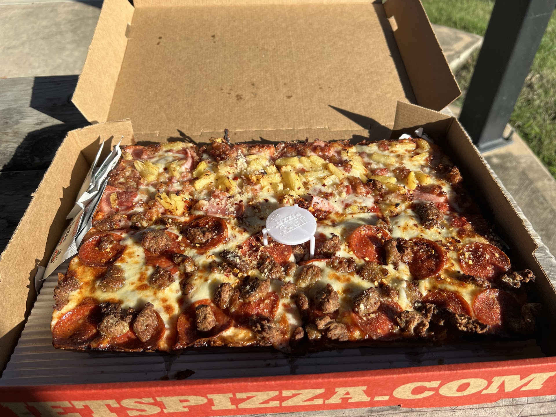 I have recently moved out to Pearland and when I saw they had a Jet’s Pizza, I immediately had to U-Turn and try them out. The staff are super welcoming and friendly. Their service and communication on your order is precise and awesome. I went to a nearby park to enjoy my pizza in the sunshine and fresh air.