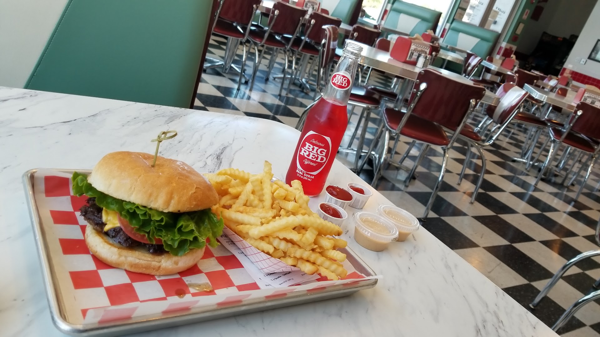 Read moreMy mom wanted to go here for her Bday dinner and I obliged. The dining room was probably 50% full when we arrived and there was a short line to order at the counter. I waited in line to order while she went and grabbed a booth. Counter service was friendly; ordered two burgers, hand cut fries and onion rings and some fountain drinks $36 after tip.