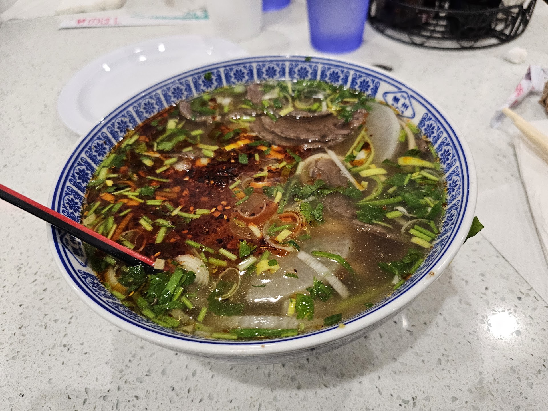 Me and my girlfriend wanted to go on a date and have some soup dumplings. After a bit of searching, I noticed Noodle Master had a 4.7 star rating. Such a high score must mean the food is great! We drove almost an hour to get there. When we get there, we used the bathroom since it was a long trip. The bathroom reeked. The men's bathroom smelled like a turtle tank was uncleaned for 2 month and the turtle died. I'm not exaggerating. Everytime the bathroom door was opened by someone, it could be smelled across the dining area. We ordered the green onion pancakes and the cheese wontons. The pancakes were really good, the only highlight of the entire experience. Wontons were dissapointing. We then ordered pan fried dumplings, soup dumplings, and the black garlic spicy tonkotsu ramen. The order was messed up and had to be fixed. The dumplings were barely edible. I've had better quality soup dumplings in the frozen section of Walmart. Tasted tainted. The ramen was the worst. There was a solid half inch of chili oil. This ramen was more red than kool-aid. AND IT WASN'T EVEN SPICY! It was ridiculous. The broth was completely bland. It was so bad, I asked to swap it out since I literally couldn't eat it. Thankfully they agreed to swap the food out for something else. I chose the beef fried rice. By the time the fried rice came out, me and my girlfriend were sick to our stomachs. The fried rice was passible. We decided to take the rice home and spruce it up ourselves since we were feeling sick. The entire time, not a single waitress checked in on us. The only time we spoke to a waitress was when we waved to get their attention. Food was a huge disappointment, the ramen was atrocious for a place called noddle master, the reek of the bathrooms could be smelled across the dining area, waitresses struggle to understand what we were saying and only checked on us when we flagged them down, and both of us feel sick to our stomachs. Maybe we had bad luck and this isn't the norm, but we had a horrible experience and will never be...