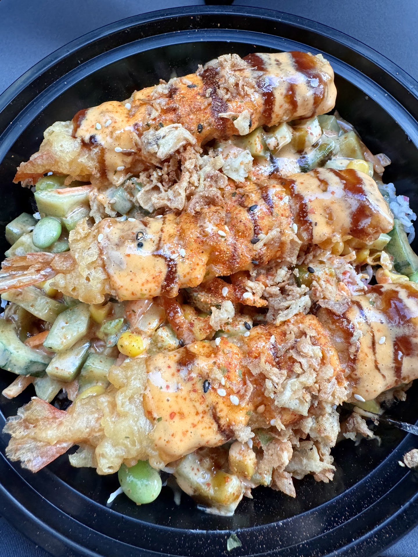 Read moreI stopped at this location because I’ve been meaning to try it for a while. I walked in and was welcomed. The menu was big and easy to understand. I went ahead and ordered the shaggy dog bowl. Was made super quickly. The staff was friendly. There was only one other customer there so it’s a nice quiet atmosphere. If I was rating the shrimp alone, it would easily be a 10/10. The bowl itself was also pretty good. I wish there would’ve been more sauce. The only reason I’m not rating a 5 star is because this locations large size compared to other poke places is on the smaller side. And for the price it is, I do wish it was a bit bigger. But overall, I would return to try other things...