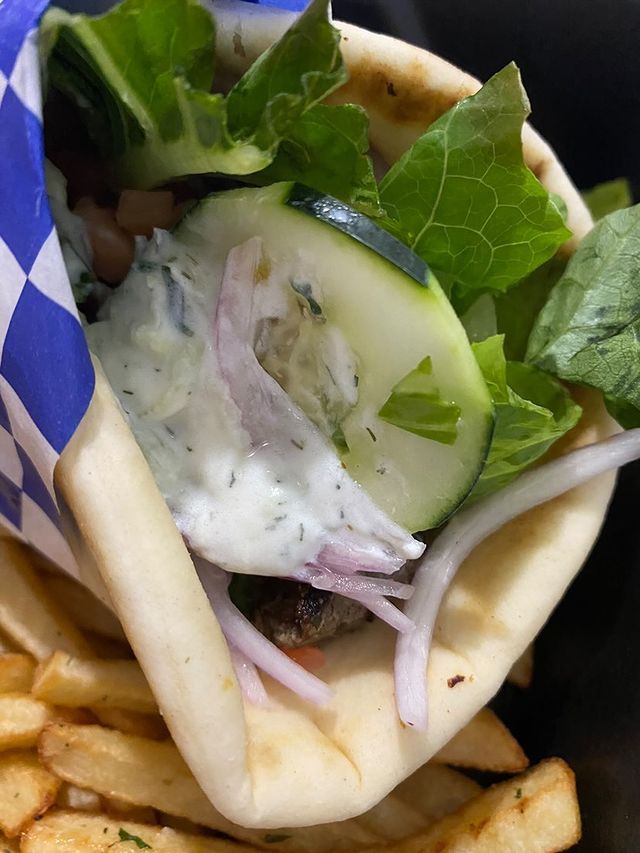 For our entrees: I had the gyro pita and it was big, filled to the max, and fresh. The meat was delicious and the sauce was even better! My fiance had the lamb pita and she said it was amazing! My son had the chicken tenders , I snagged one to try, and man the breading on the tenders was so delicious and crispy! The fries were seasoned well and tasted great!