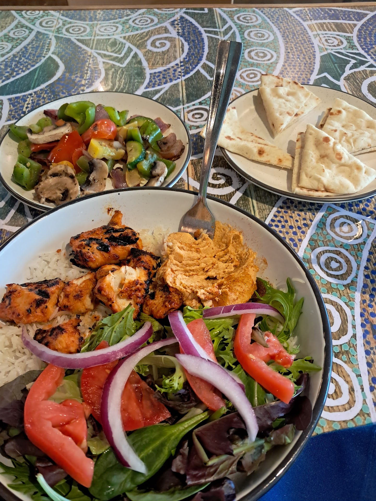 I had high hopes for this restaurant but was, alas, disappointed. They advertised themselves as a Mediterranean restaurant with influences from Greece and its neighboring nations, but this couldn't be further from the truth. When you walk in, you're greeted by charming portraits of Thrace: Greece and Turkey, as well as the ambiance of cultural music and hospitable service. Overall, good vibes. The food, on the other hand, is a different story and needs immediate improvement. For starters, the tzatziki sauce is not evenly distributed throughout the pita and so you get ends soaked in it. The salad ingredients are similarly lazily slapped at the very end of the Greek gyros. There's no cohesiveness. Secondly, the gyros arrived cold. Only three minutes had passed by the time I touched it! The meat was also somewhat dry. Lastly, and this may be a nitpick, but I've never seen cucumbers in gyros, which really just tarnishes the authenticity of the dish. I feel less is more sometimes and would honestly save the owner a buck. The side of fries also lacked flavor and were soggy, as if they had been sitting out for a few hours and had deflated, despite the fact that they were freshly prepared. The Turkish rice pudding was also undercooked and gritty, which was unfortunate expectation-wise as these desserts aren't readily available locally.