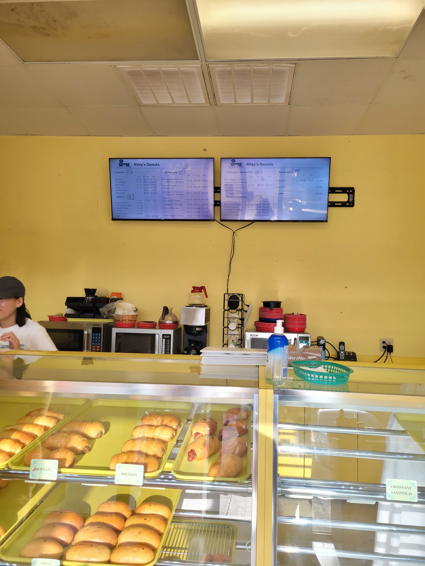 Ā Ā Ā Read moreIn a town where Shipleys is king Riley's must be the prince. I don't hail from here, rather been a vagabond my whole life and I adore a good raised donut. Riley's donuts are light, airy, non-greasy with a beautiful crisp skin. They have just enough variety to keep you happy and croissant sandwiches and rolls. We ordered a standard dozen chocolate and sugar and a specially made egg and cheese croissant (my sis does not eat pork). The owner whipped up her sandwich, even going so far as to season the eggs. It was quite good! Step aside Shipley's I wanna hang with this...