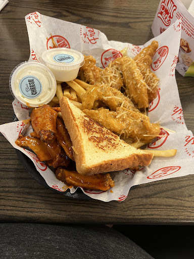 Good presentation! The platter looked like there were more fries in the order than anything unfortunately that was an illusion. On the wing: BBQ. On the tenders: Garlic Parmesan. Both were consistently wet like a steady drizzle on concrete a rainy day. Liked the added touch of the parmesan grated on top of the tenders. Both flavors were good, though the GP Tenders were a bit vinegary. Fries were good not great. They lost their strength after the after fryer cool down.