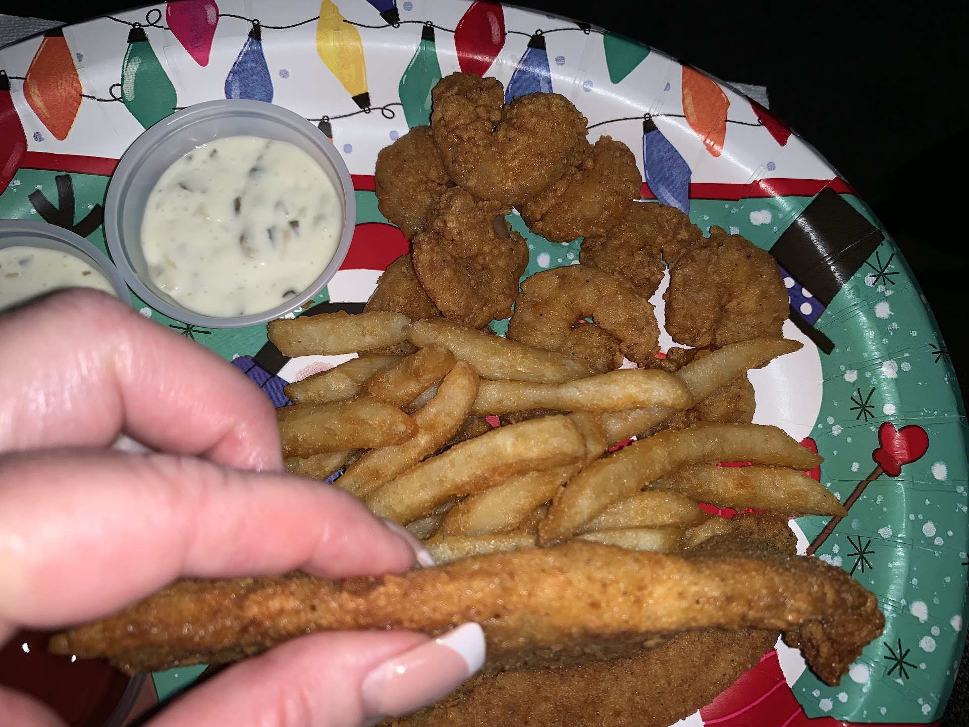 Read moreAte at steamboat bills in Lake Charles last weekend for the first time and was very impressed. Found out there was one right close to home and we went there today to pick up an order to take home ONLY to be extremely disappointed!!! The portion size when you order a large fish plate ($25) and large shrimp plate also ($25) compared to the one in Lake Charles. Prepare yourself to only be getting half the amount of food at the one in Houston. Plate is only worth maybe $15 at the most. The fish fillets are less than a half inch thick and the shrimp are tiny. SEE PHOTOS ATTACHED In Lake Charles the fish fillets were over an inch thick, and the shrimp were medium size and very filling. I will drive all the way back to Lake Charles to get better quality versus go to this location again. The staff was very friendly, but the food was definitely not worth the price. Not even worth half the price. You can see in the photos I have attached the thickness of the fish fillets maybe a half inch thick and the popcorn shrimp that was in my hand. Can’t even call it a medium size shrimp. In Lake Charles for the large plate we were given a minimum of 30 shrimp and at the Houston location. We literally counted 16 popcorn shrimp. And 4 very VERY thin...