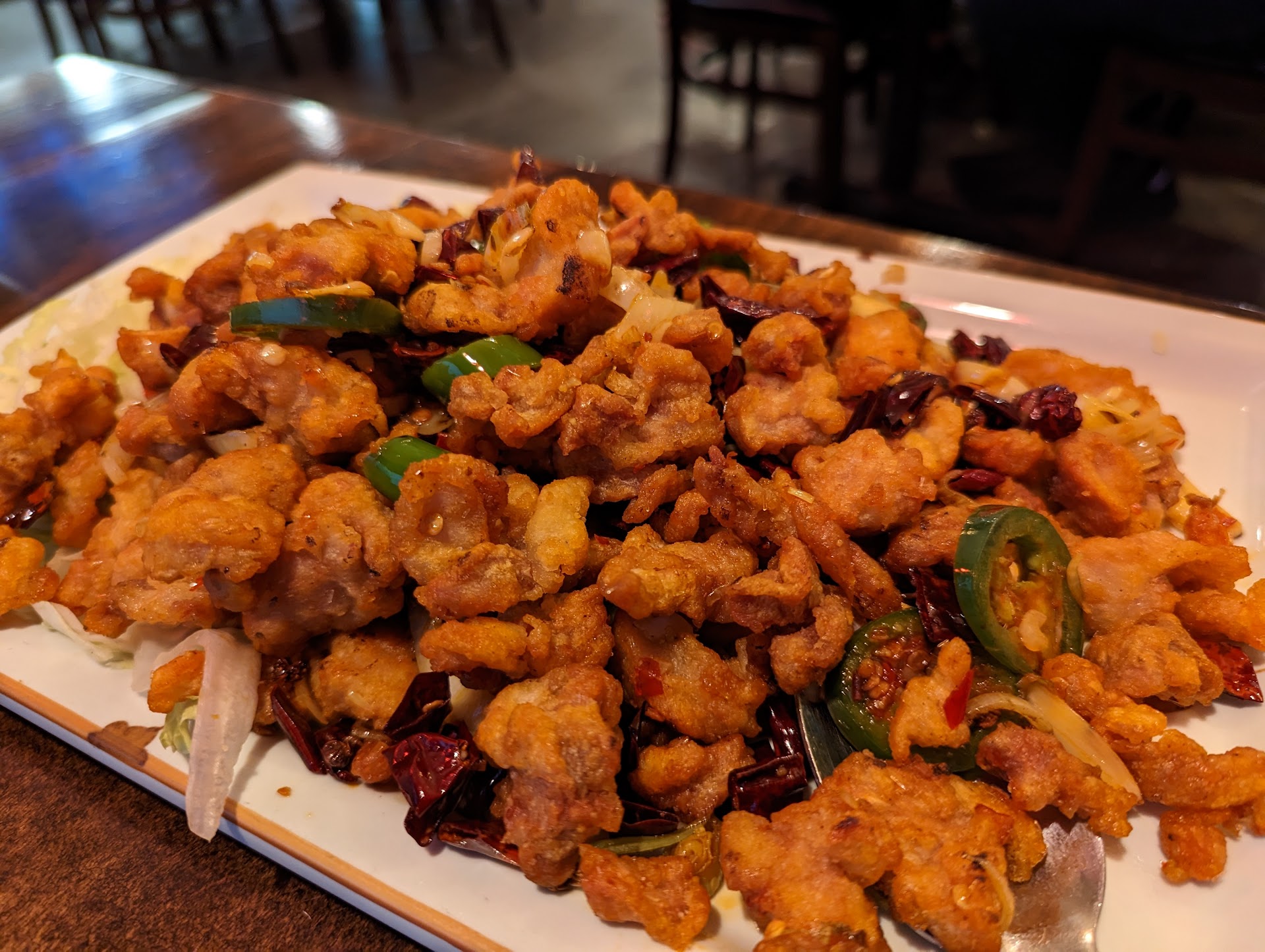 Another spicy dish I recommend there is the Three Flavor Pepper Chicken. I wasn’t prepared for the flavor packed into this chicken! The crispy breading hiding the succulent, juicy chicken mixed with chili’s and peppercorns was amazing! The portion size is incredible as well.