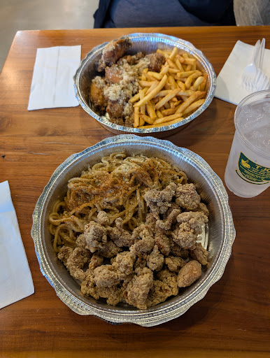 My friend introduced me to this place as she took recently found about it. We tried their popcorn chicken with garlic noodles and the garlic parmesan chicken wings with french fries. They did not disappoint. đ€© The popcorn chicken was well seasoned, juicy and tender. The chicken wings were nicely fried, with a crispy exterior and a juicy and succulent interior. Everything was made to order and hot. The garlic noodles were fantastic. It has the right amour of garlic and we loved every bite of it. For the taste, quality and size everything was worth the price!