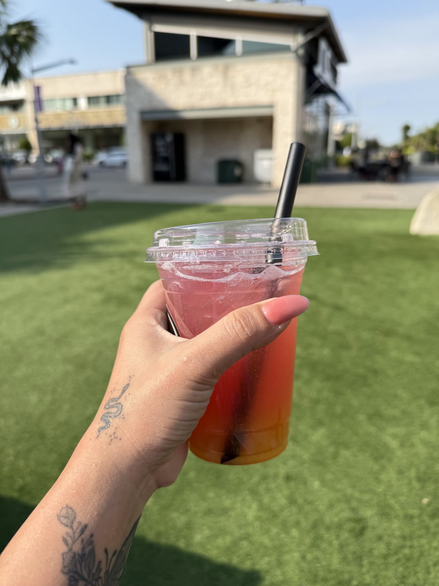 To enhance our meal experience, we sampled a refreshing beverage called Sunset Peachy. This drink was a vibrant blend of sweet peach flavor, adorned with luscious lychee toppings, and mixed with sparkling water for a delightful fizz. The combination was not only visually appealing but also incredibly refreshing, adding a unique twist to our snack.
