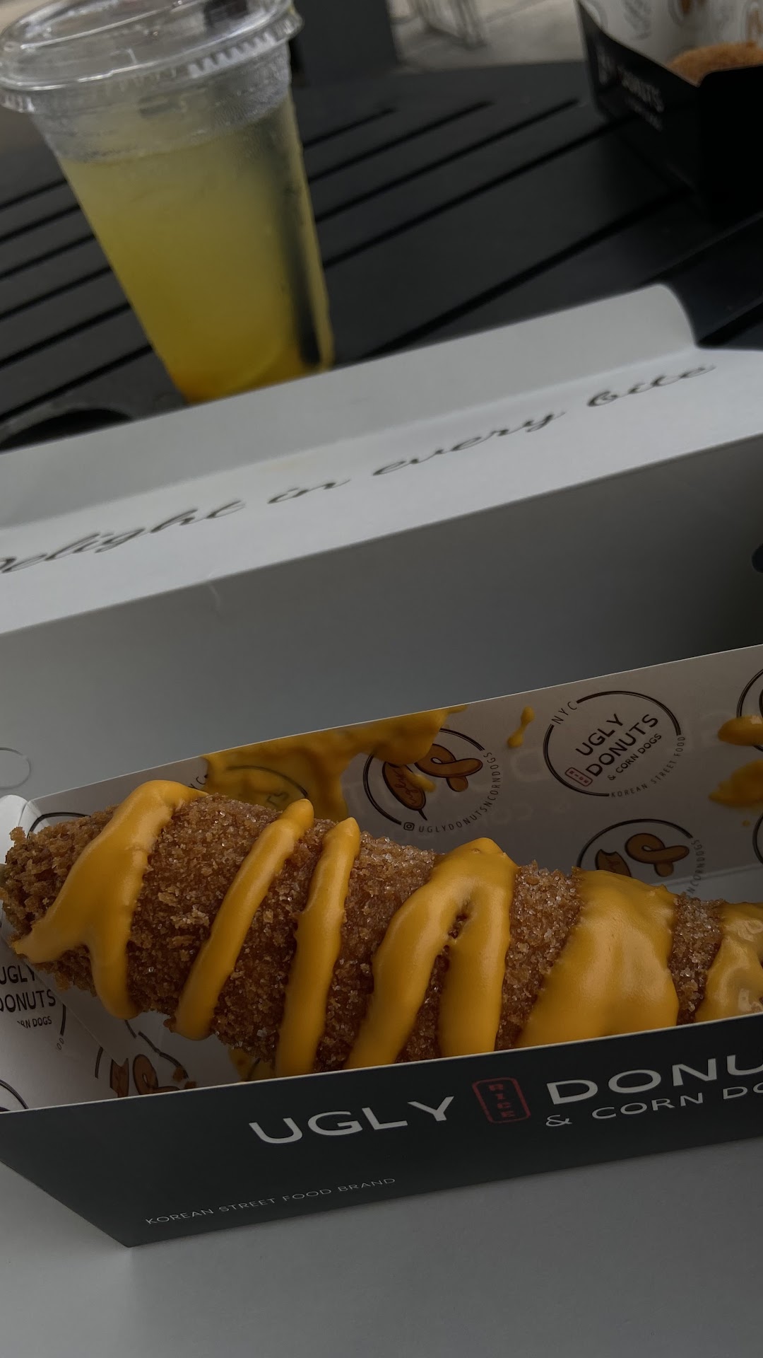 Read morePretty cool spot for some doughnuts. I'm veg so I asked for the vegan hotdogs they advertise online, unfortunately they don't have the vegan corndog at this location, made me sad lol. I however ordered the original ugnut, redbean doughnut and blueberry ugnut with help of the staff, and they were pretty good. Those ones are vegan. A little pricey but not bad, dough soft good, outer layer pretty crunchy. I found it a little difficult to order with the kiosk, but after the learning curve it was fine 😅. All in all reccomend these ugnuts. Its cool that you get to see the staff make the dough and corndogs upfront, very similar to Korean streetfood style. Long line when we came, but next time we may order online for pickup as thats an option too. Pretty small but pretty...